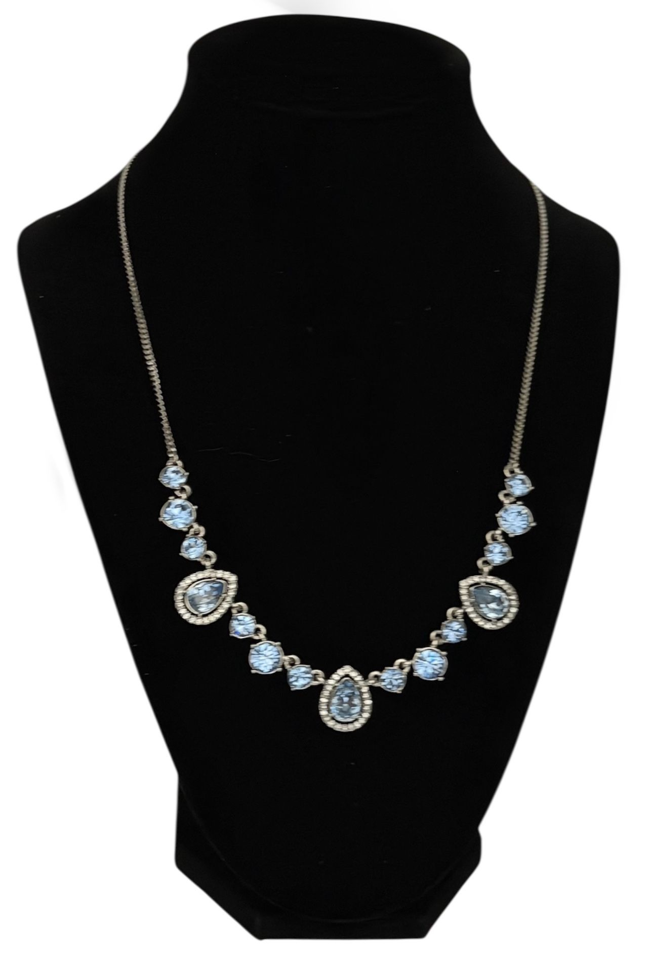 NWOT Givenchy Silver Tone Light Blue Crystal and Cubic Zirconia Necklace