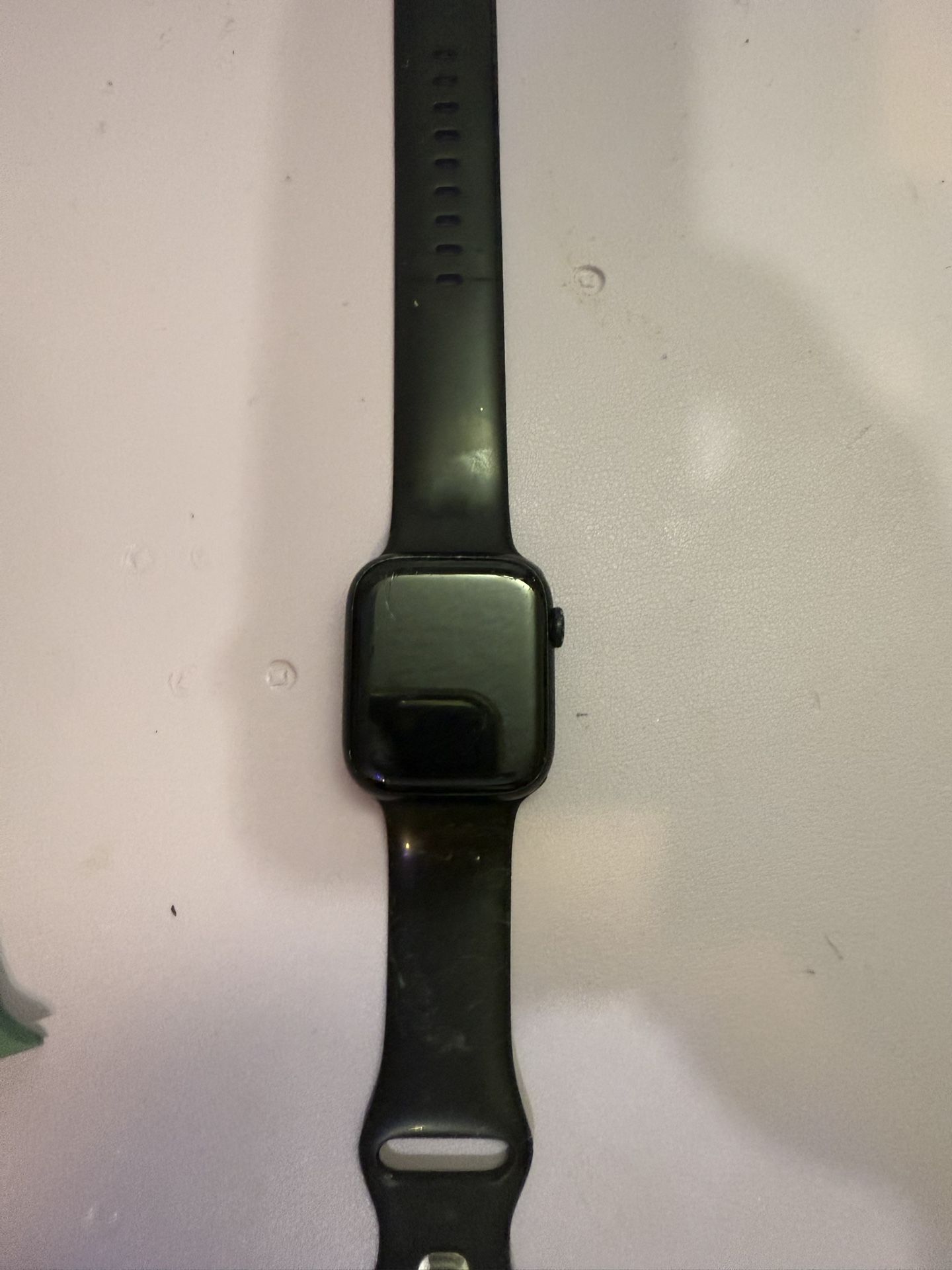 Item has some signs of wear and tear with some scratches on the top of the watch(not screen) Works perfectly. Selling because I upgraded. Comes with several bands