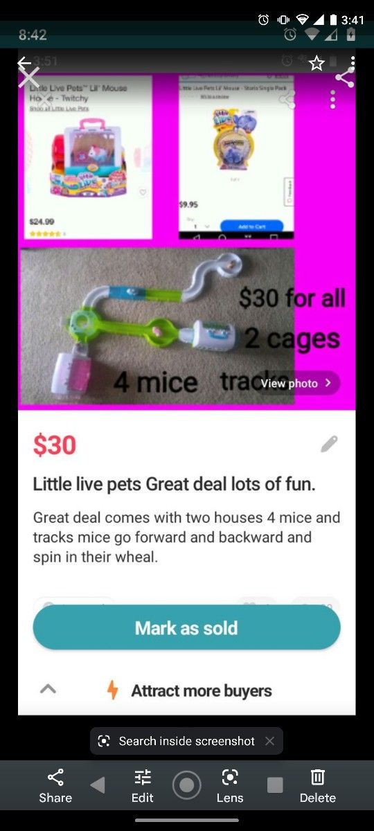 Great deals! Little live pets all for $30 cash register $8 fingerlings $10 and more chip $15 Madeline doll $5 Peter rabbit $8 building blocks $10 Shopkins airplane $8 boxy girl $8 wooden math game $8 walking spider $10 and small connecting blocks $8