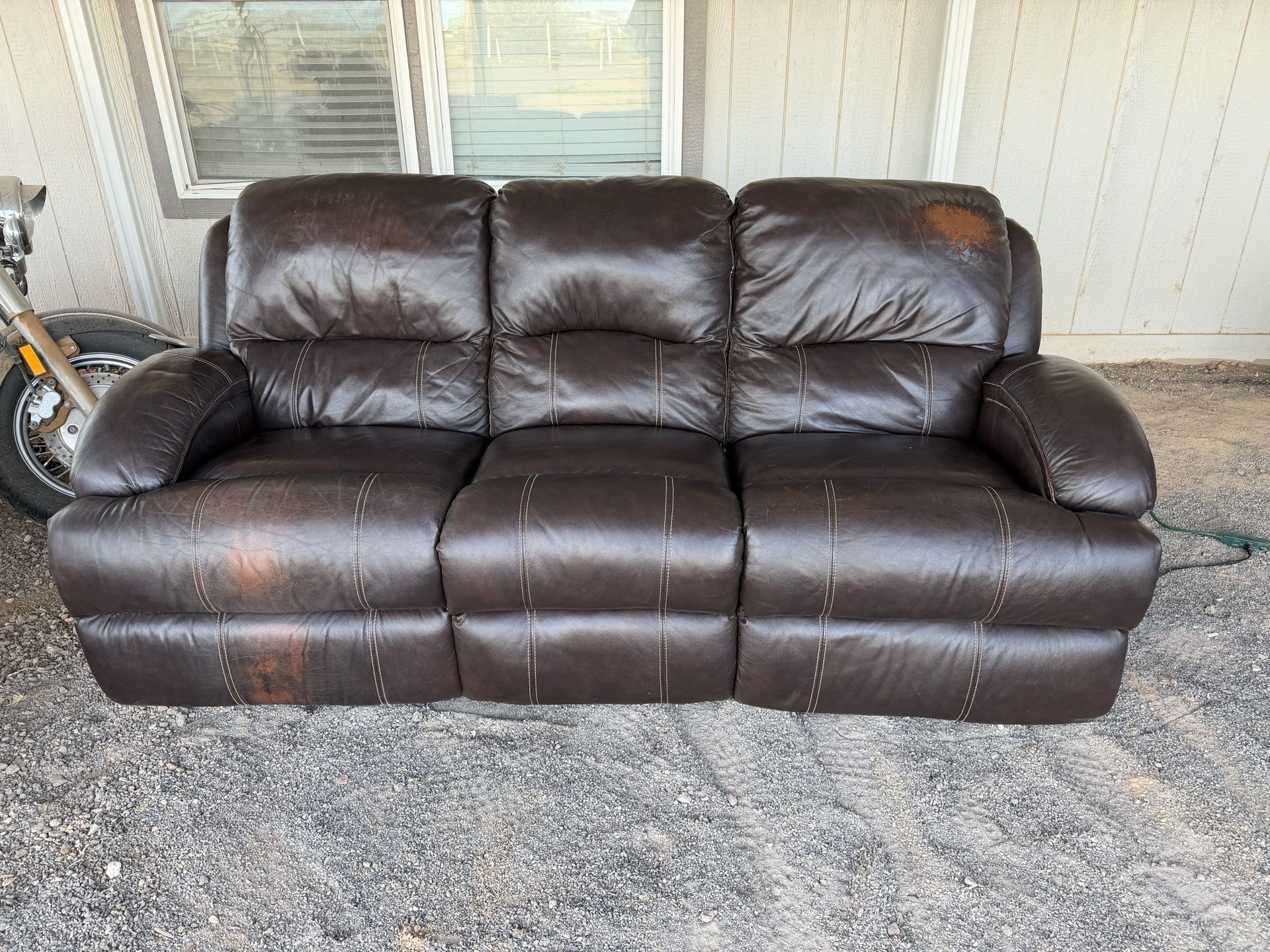 $300 OBO Free Delivery! Great Condition! Minor wear (shown in pictures) Smoke and pet free home! Perfect couch for a man cave or living room! Dimensions: L - 86in W - 38in
