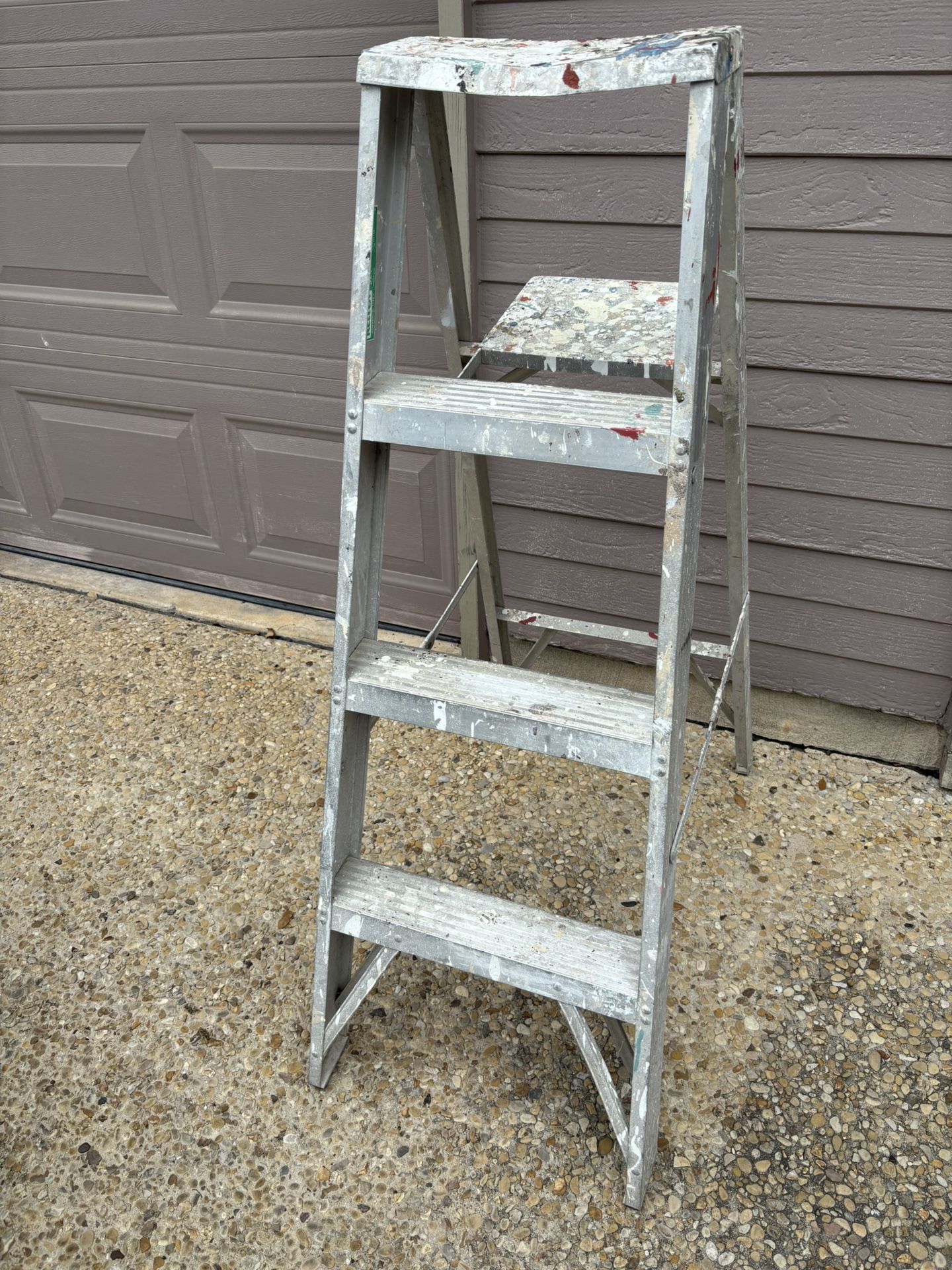 Used/fair condition, 4 foot aluminum ladder. The ladder is dented and has paint on it, but it is functional. If you are interested, please include your (day and time) in your message to me. Messages without availability will not be responded to.