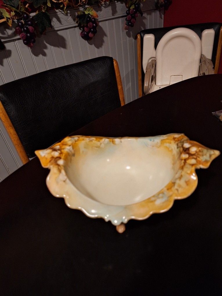 Vintage scalloped candy/nut dish. About 3-4" deep, 9" long and 7" wide. 4 cute little legs underneath. Very nice and unique piece. $10 obo