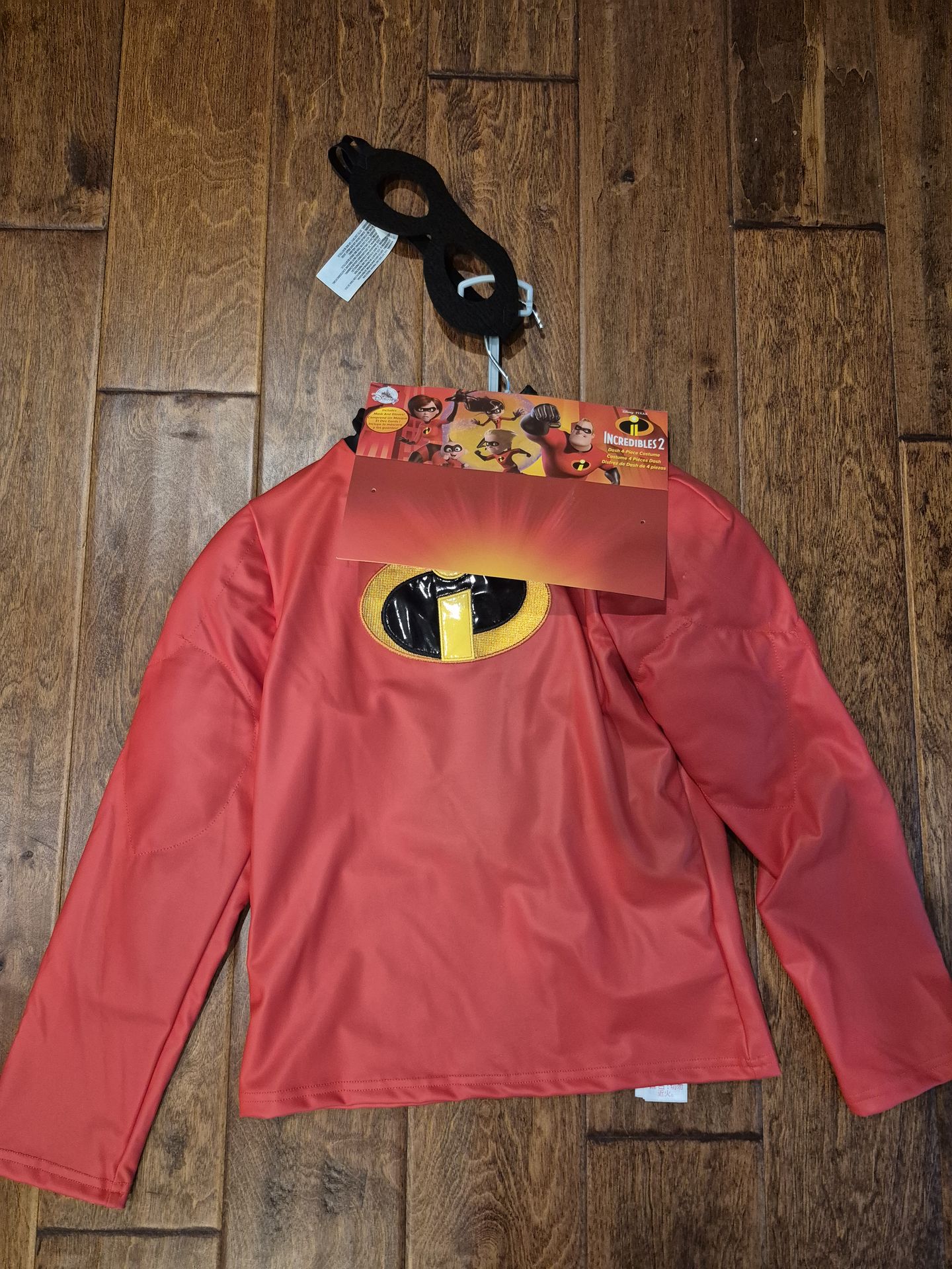 Used, like new. Used only once. Incredible 2 Dash 4-piece costume: Mask, 2 gloves, and Top. Size Medium (7-8). Asking for $30.