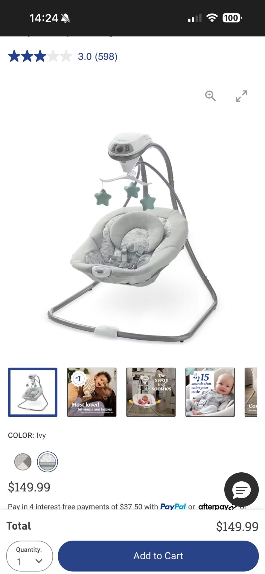 Like new. Only used a few times. No stains, nothing wrong. Regular $150. Make an offer. Also have a pink/white bassinet like new. A few other items for baby’s Let me know what you’re looking for or interested in.