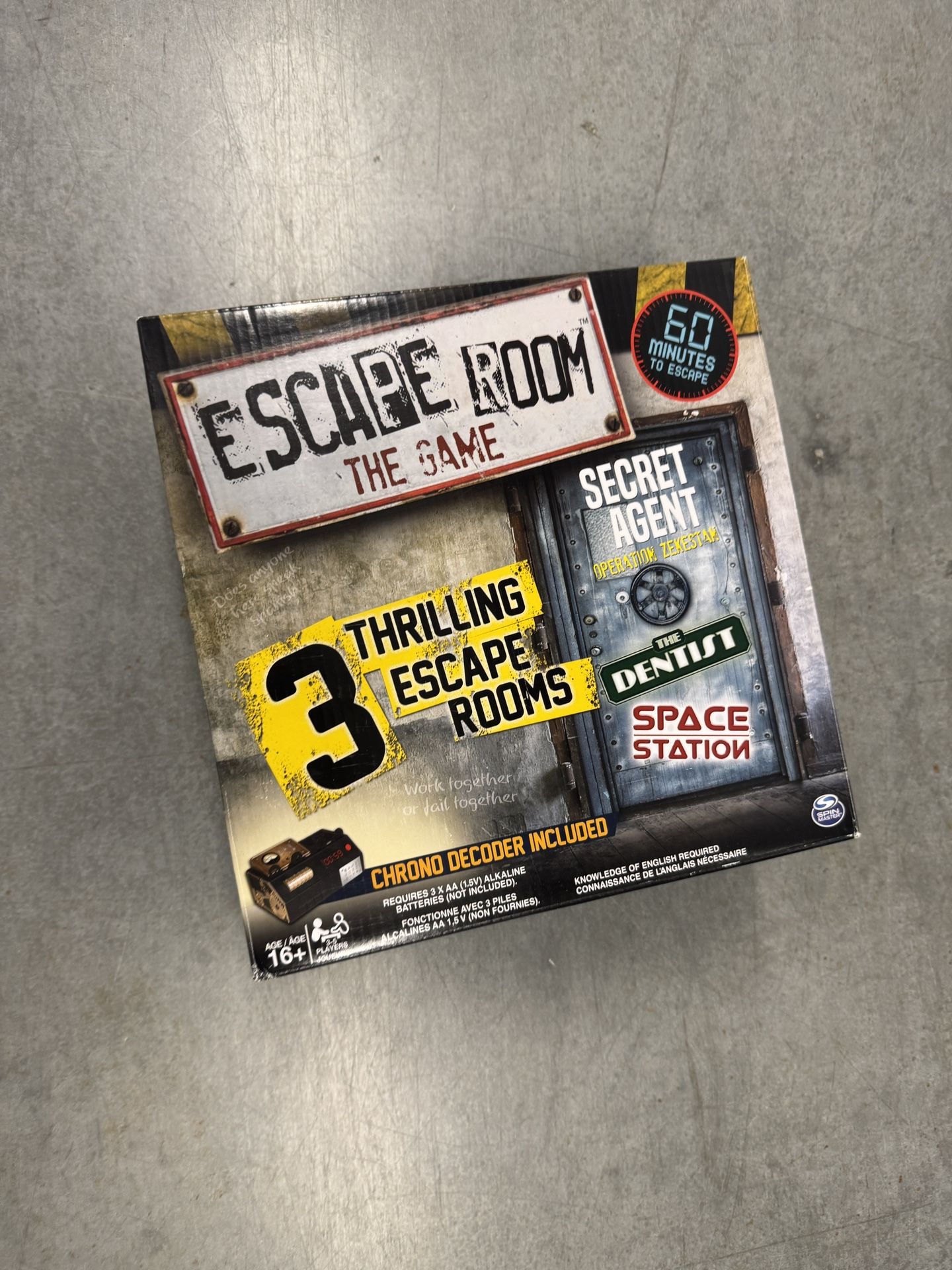 Brand new, never played. Escape Room challenges include: Secret Agent Operation Zekestan The Dentist Space Station Pickup in Issaquah right off i90 and front street.