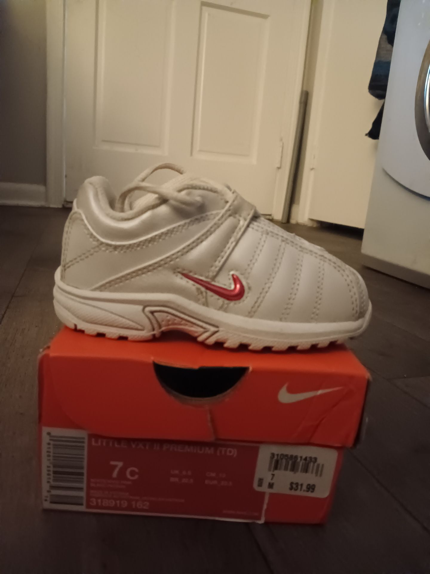 Brand new , still in box , toddler Nikes . Size : 7c Pic up from my house .