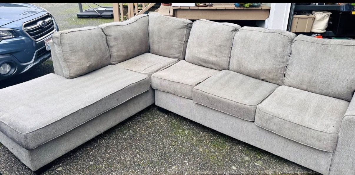 I have a good condition gray sectional with a right hand chaise while using. Measurements in the photos. Recently washed! Local delivery is available!