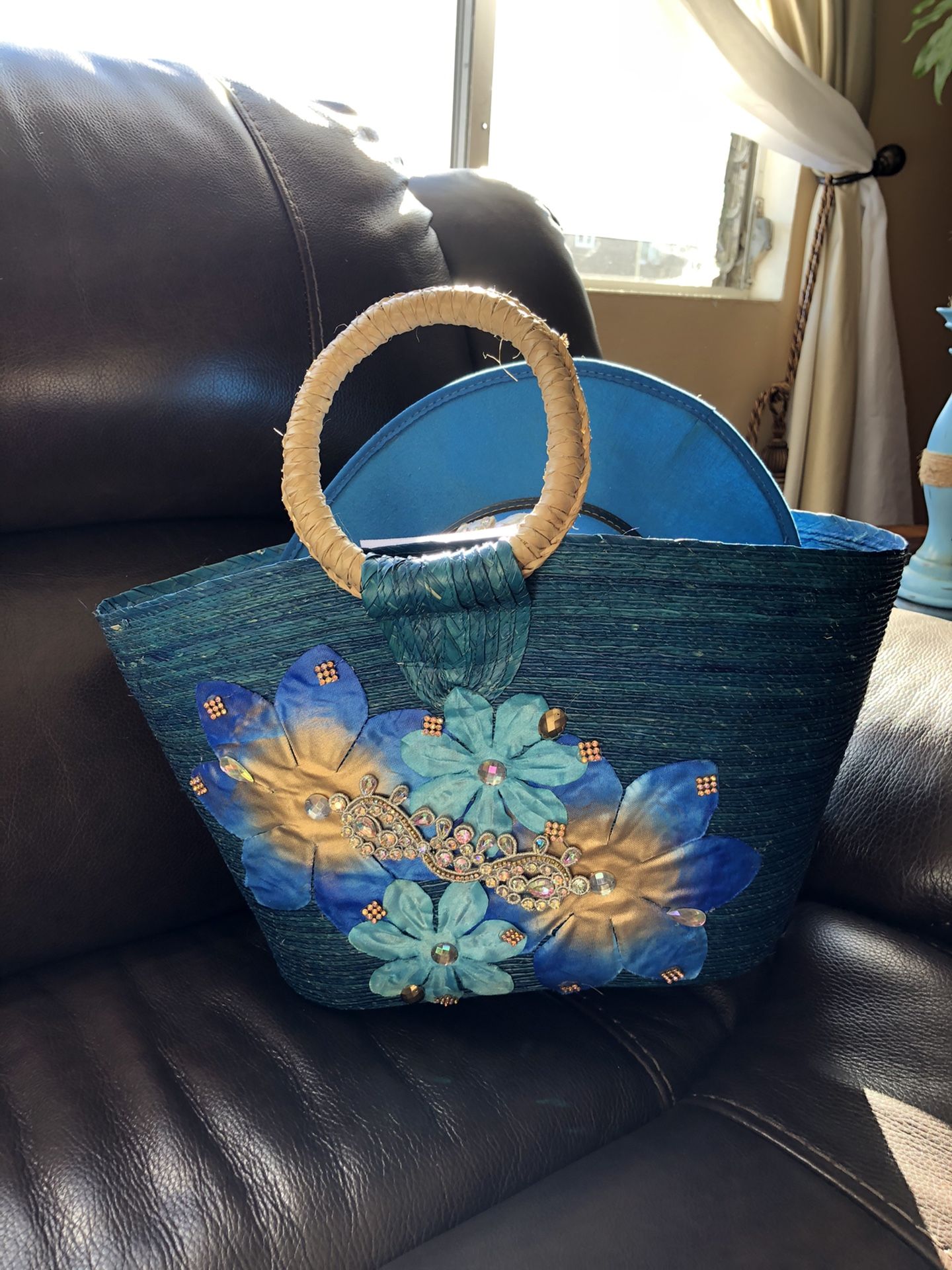 Cute Beachy Blue Tote Bag & Sombrero Hat - Handmade In Mexico