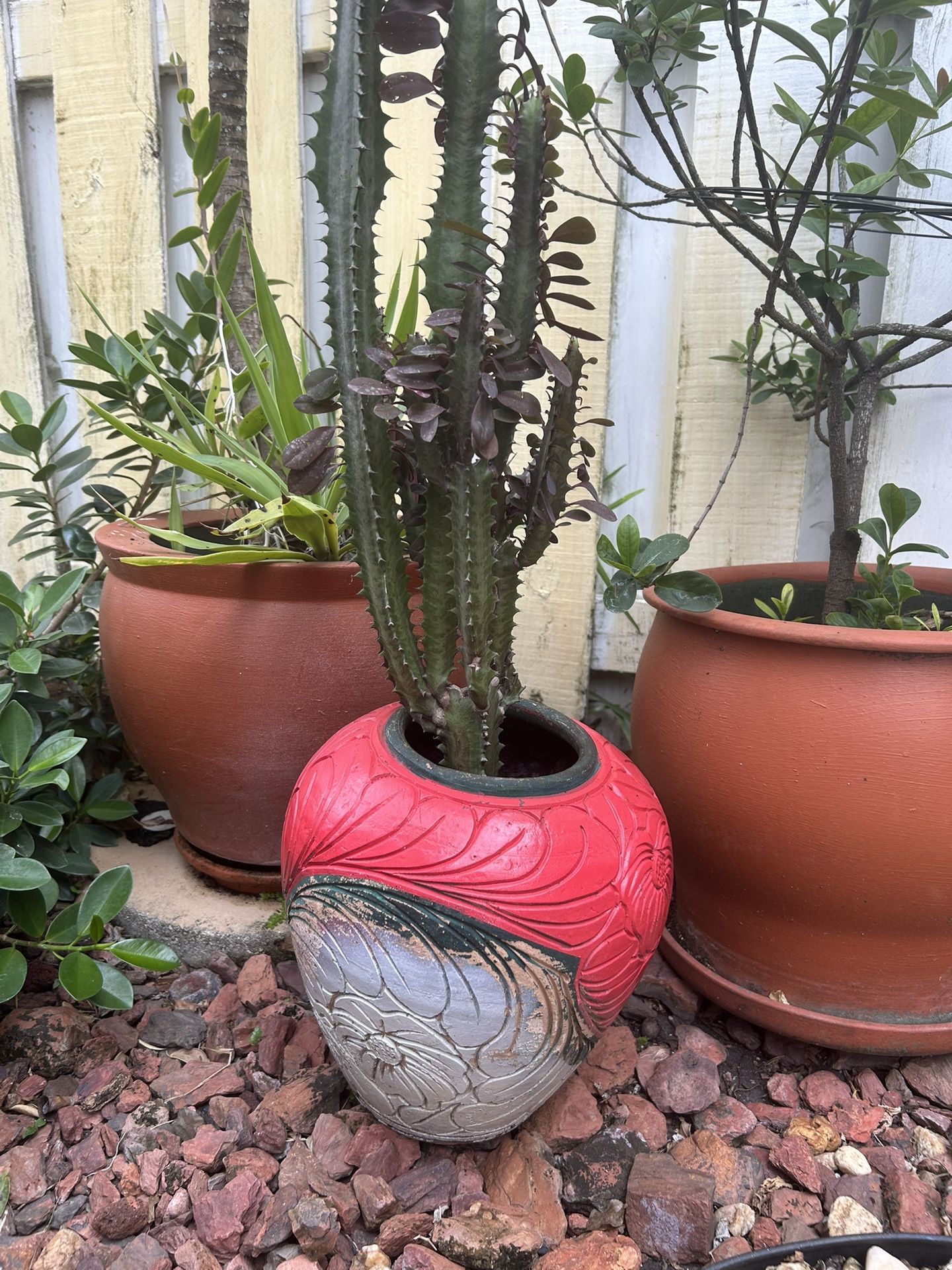 Selling a 12” tall planter with a cactus plant. Nice add on to your garden