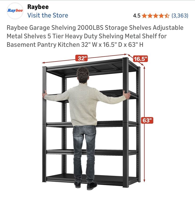 I’m selling 2 shelving units which are 32" W x 16.5" D x 63" H I’ve already disassembled one and they break down very small for easy transport. $65 each. Cash or Venmo preferred.