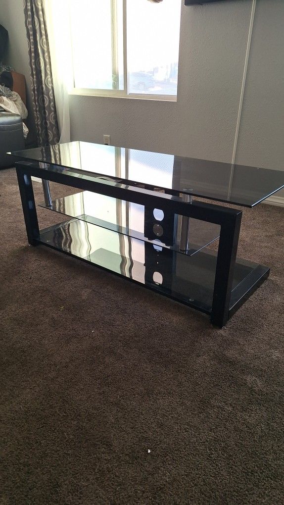 Three shelf clear black glass black tubing entertainment stand 52 inches by 19 and a half Henderson 89002 crossroads 95 and Nevada state drive