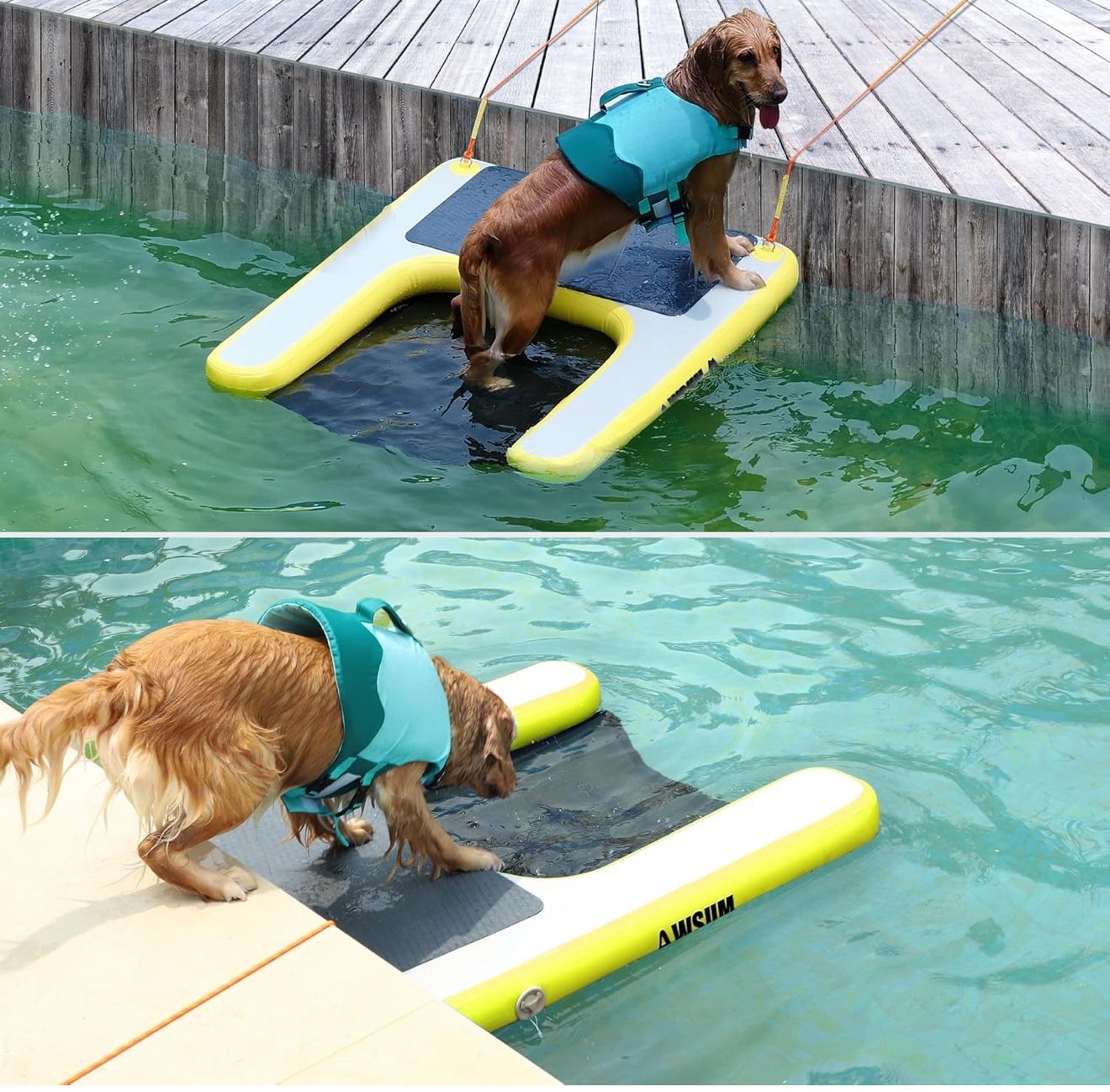 This was amazing and kept my dog from. Longing to me while we floated. I now have two water dogs and don’t fit on this large ramp. So I bit the bullet and bought an XL ramp. Now they are happy. I have the pump, the repair kit( never used it) and of course the ramp. It is yellow/white. They swim right up into the net then up onto the ramp. We live in the Irmo area.
