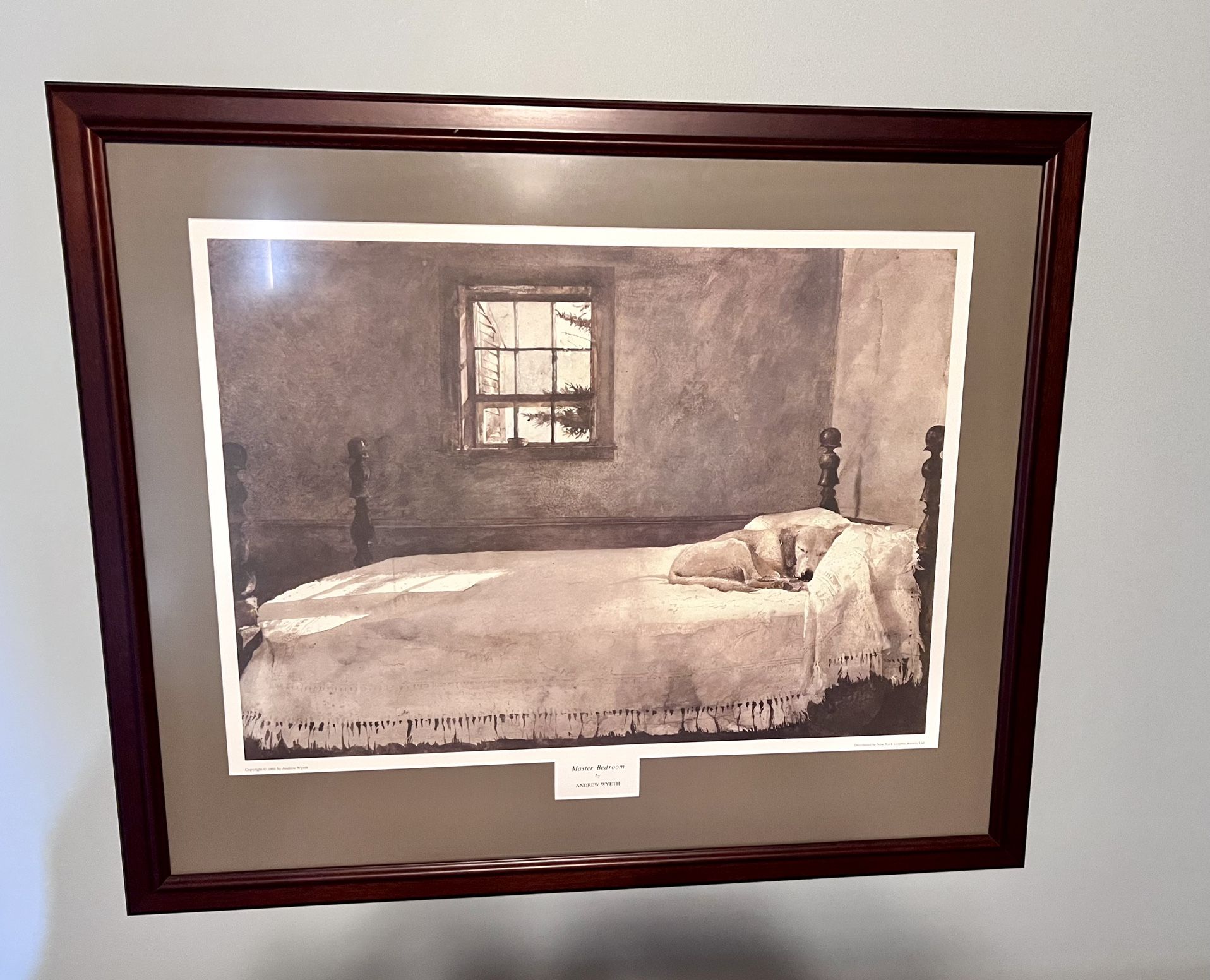 Andrew Wyeth “Master Bedroom” print. Large 34” x 29” wooden frame. Double-matted. Hanging wire. Excellent condition.