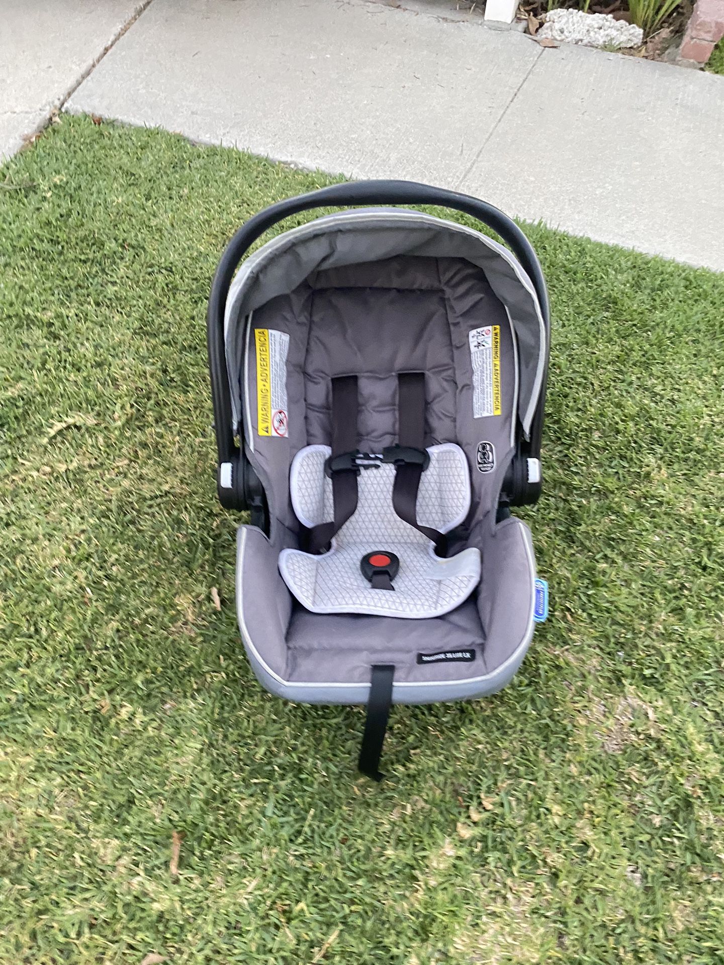 Infant scar seat, barely use great condition from infant to 12 months old 4-35pounds my 14 month toddler still fits but her little legs hang out a little.