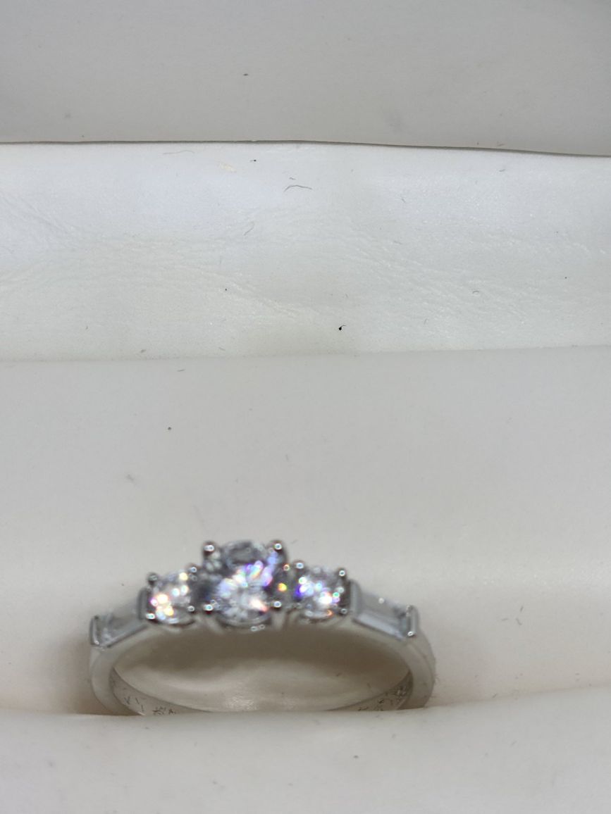Selling the very best for less! Sterling silver will not tarnish your finger. Sizes available 5,7,8. "Round and baguette stones" Free gift with every purchase Every purchase comes with its own gift box Se Habla Espanol