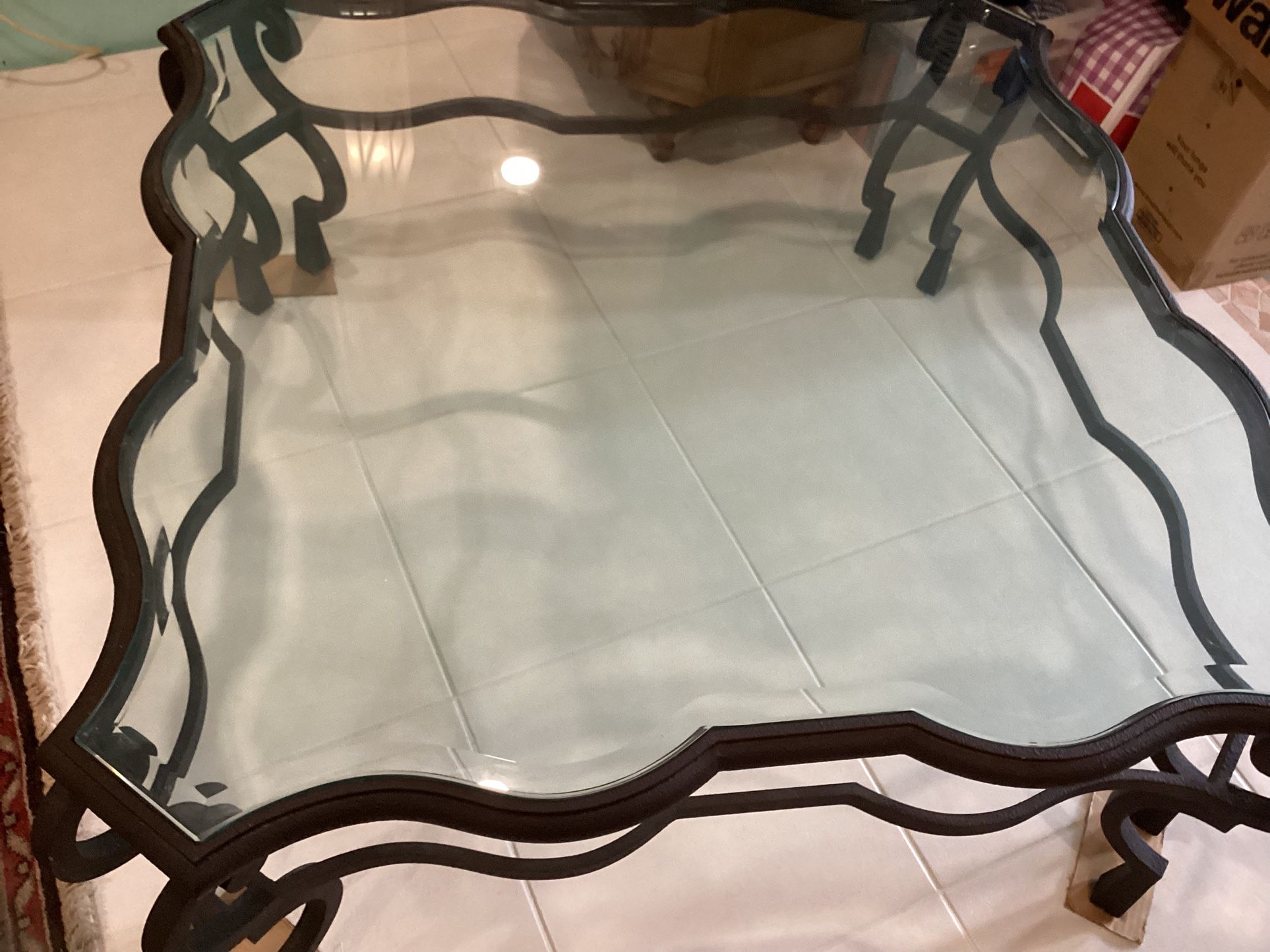 Cast-Iron Coffee Table With A Thick Glass Asking $800.