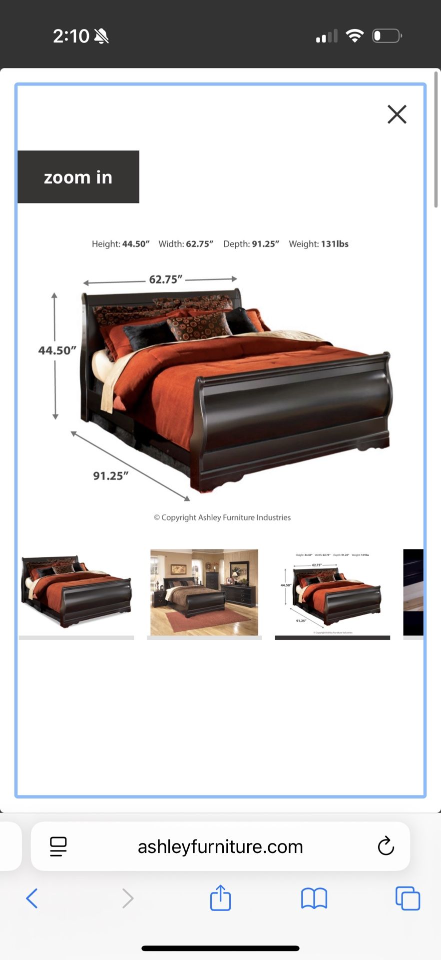Ashley’s sleigh Bed QUEEN size