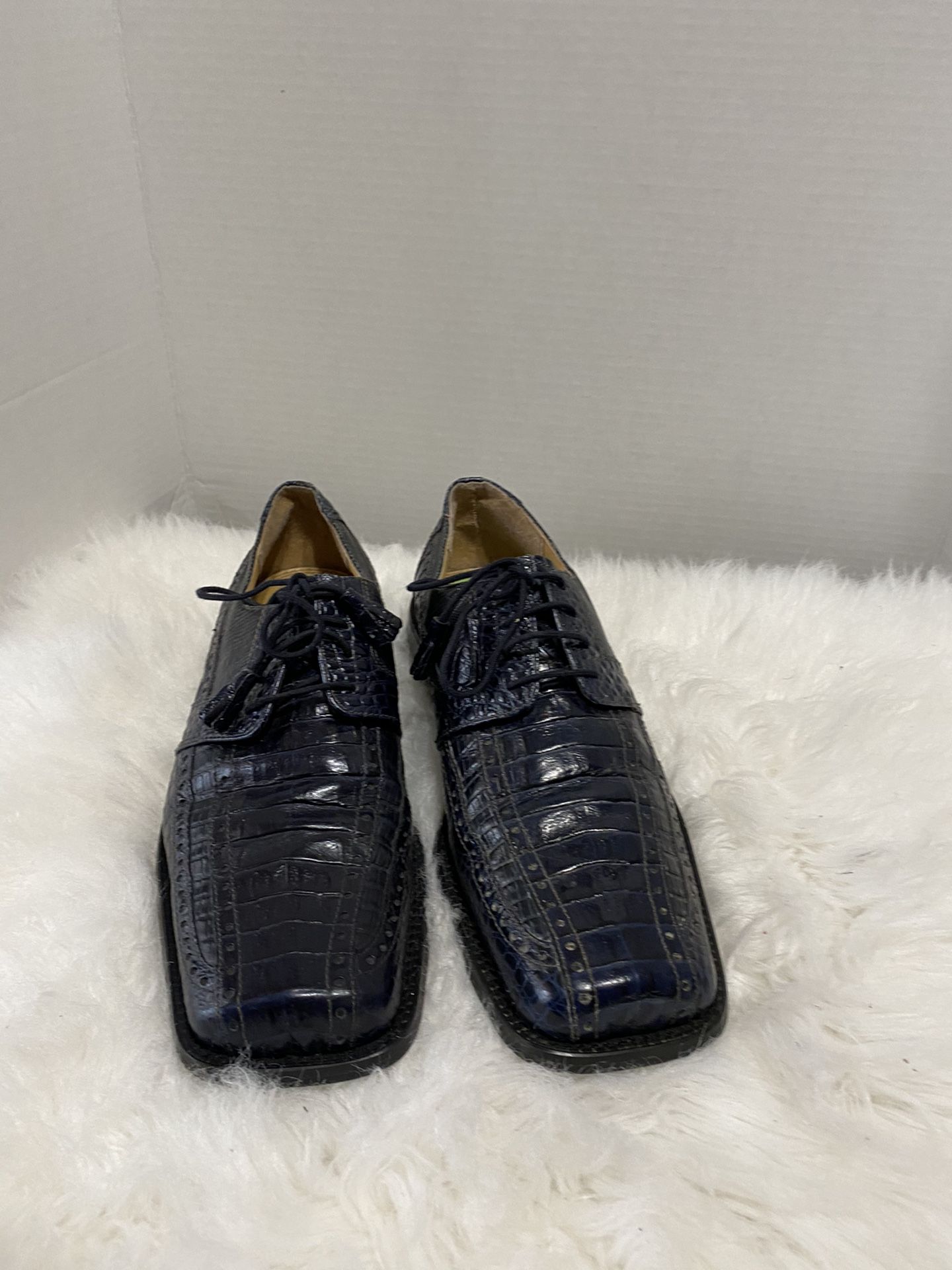 Giorgio Brutini Mens Crocodile Print Square Toe Blue Leather Shoes US 9