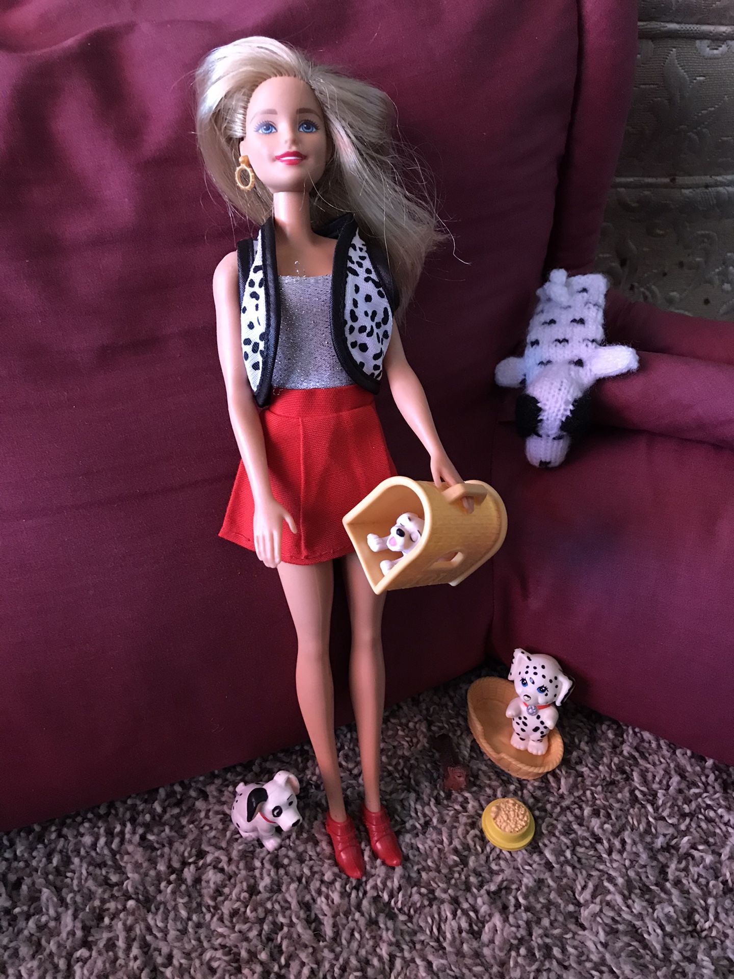 Cute Barbie doll gently played with and her Dalmatian pets. Nice condition
