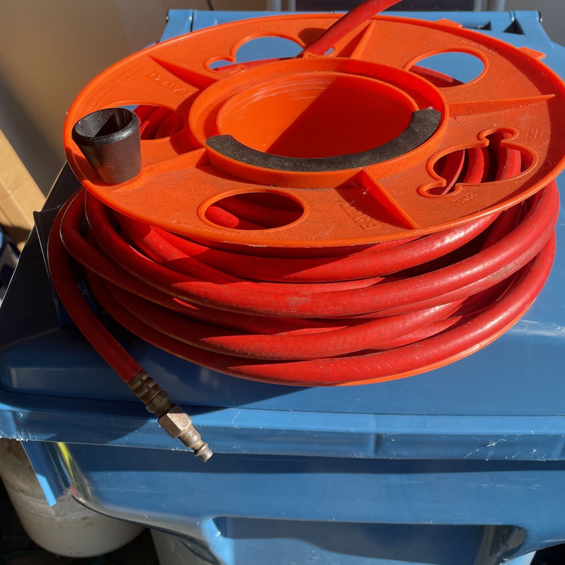 7/16”OD with 1/4” a fitting . Should be at least 50ft .
