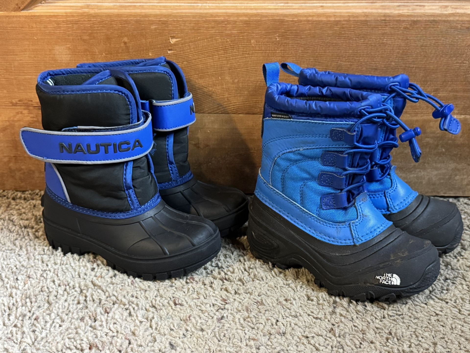 Boys boots size 10 Left are new, Nautica- $25 Right are North Face $35