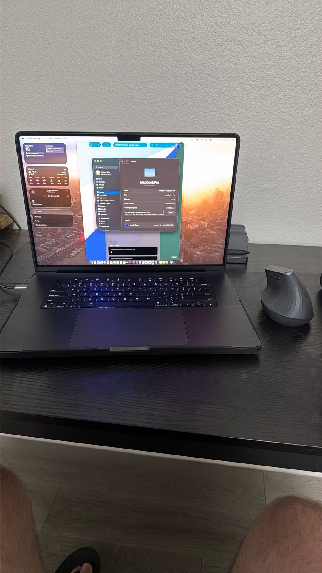 16” Liquid Retina XDR Display 24gb RAM M4 chip 500gb Logitech mx vertical mouse Laptop stand 15.6” Travel dual screen monitor Perfect condition in case since day one No box comes with charger