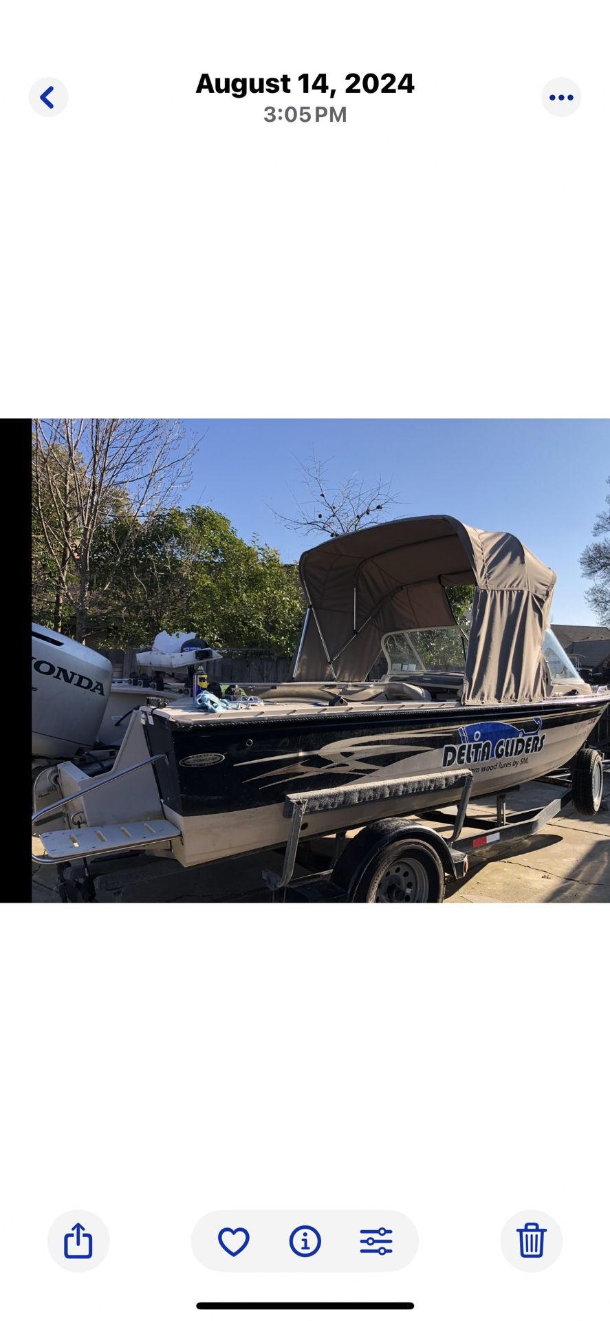 New stereo system new tires on the trailer new flooring with diamond plate must see it’s been modified inside for more fishing room new fish finder must see