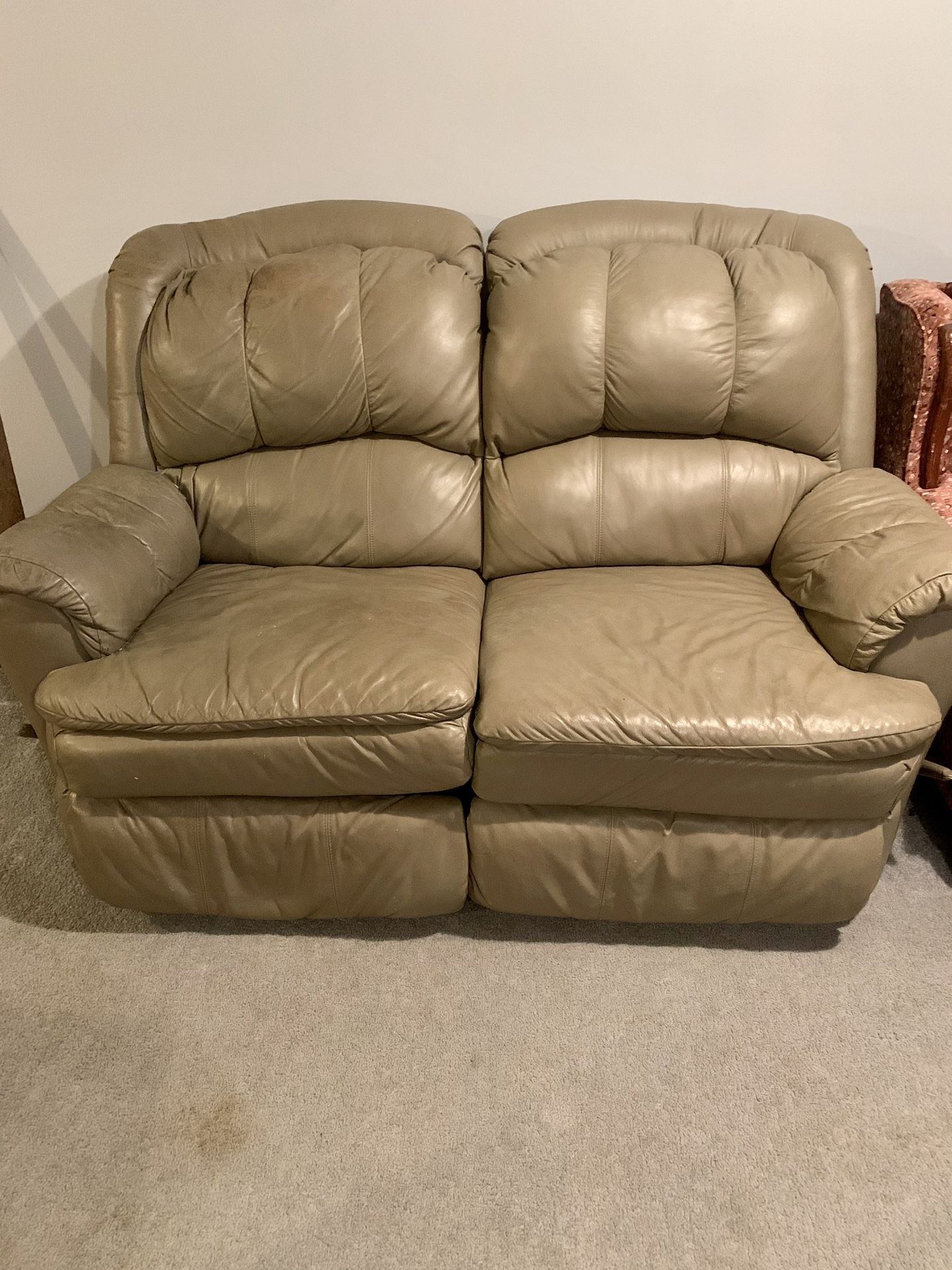 Dual rocking recliner loveseat good condition - rocking swivel recliner good condition & sofa with 2 recliners at each end. The sofas have some spots I never tried to clean - we got new ones. These are very very comfy and have been in our playroom. They needs some TLC & some cleaning Very durable furniture they are heavy but they come in pieces so it’s easier to move and then you screw the pieces back to the base. Paid 4,000. New they are 9 yrs old. Will sell separately also if wanted. RE-LOCATING. MUST SELL