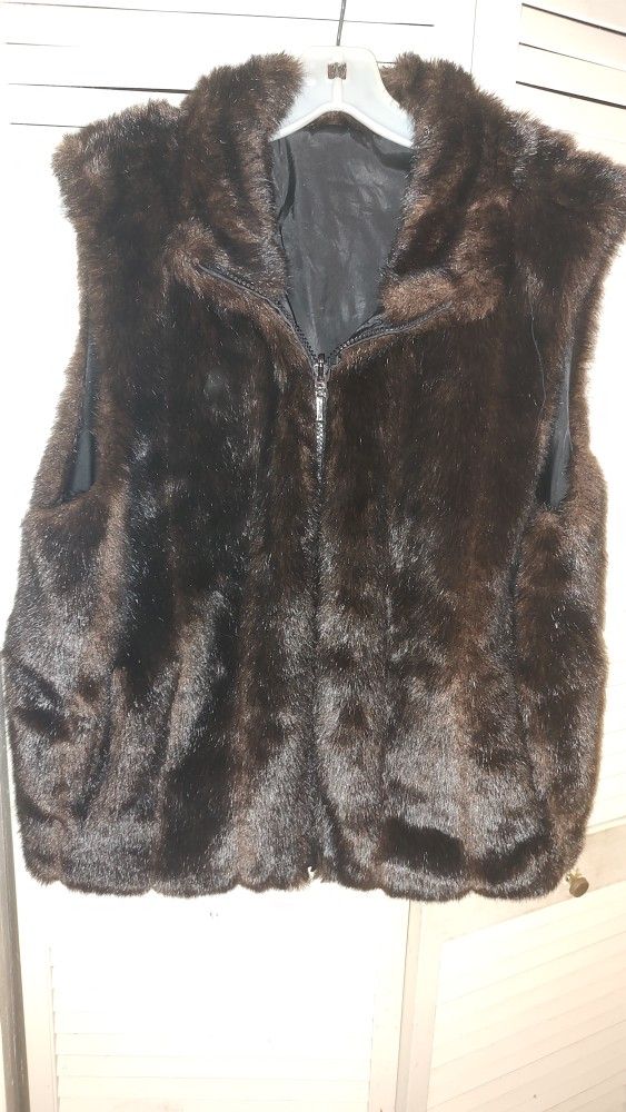 Fantastic mink look faux fur vest! Collared, with a zip front. Lined, with inside pockets, can be reversed. Made by Worthington, size XL. Really good looking...great find.