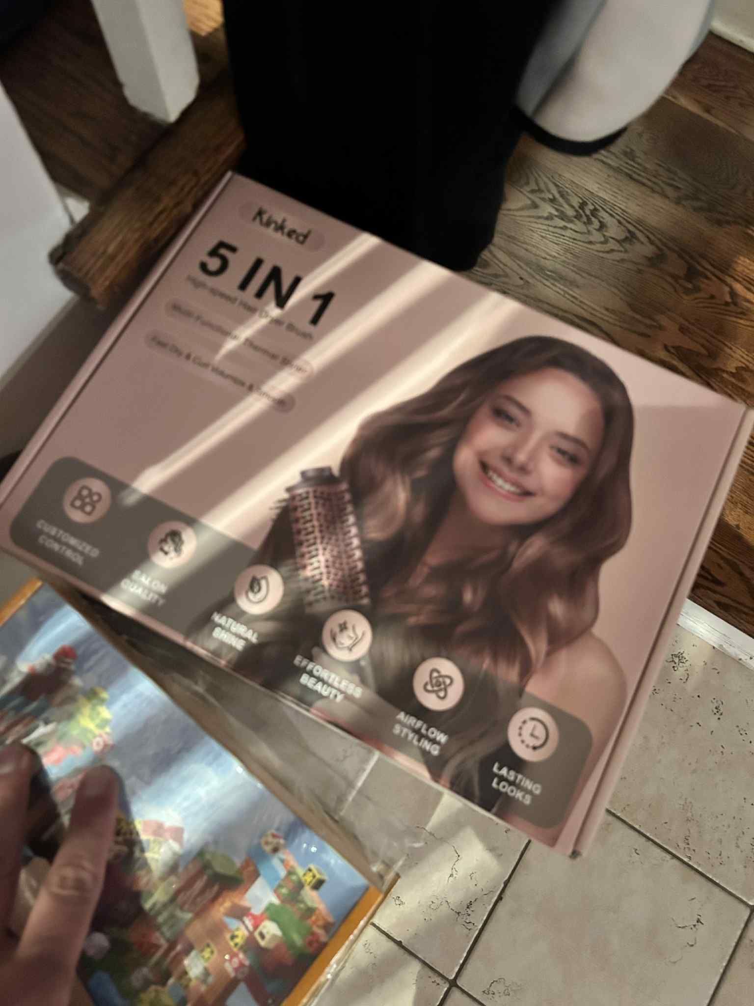 RETAILS for $119. Can be yours for LESS. All-in-One Hot Air Styler Wrap】This 5-in-1 hot air styler wrap combines a high-speed hair dryer, auto wrap curlers, and a volumizing blow dryer brush in one. Effortlessly dry, curl, straighten, and style — all with a single tool. Perfect for daily touch-ups, travel, or creating salon-style looks at home. 【Air Auto Wrap Curlers for Effortless Styling】Two 1.25" auto-rotating curlers use powerful airflow to wrap hair automatically, creating soft, bouncy curls in seconds. No clamps or tangles — just smooth, symmetrical results. Easy to use even for beginners. 【High-Speed Motor for Fast Drying】Equipped with a 110,000 RPM high-speed motor that delivers strong airflow for ultra-fast drying and styling at the same time. Save time every morning while achieving full, voluminous results. 【Frizz-Free & No Heat Damage】Advanced airflow technology and heat sensors monitor temperature up to 1,000 times per second to prevent overheating. 20 million negative ions reduce static, seal moisture, and protect hair cuticles — leaving your hair smooth, shiny, and healthy.