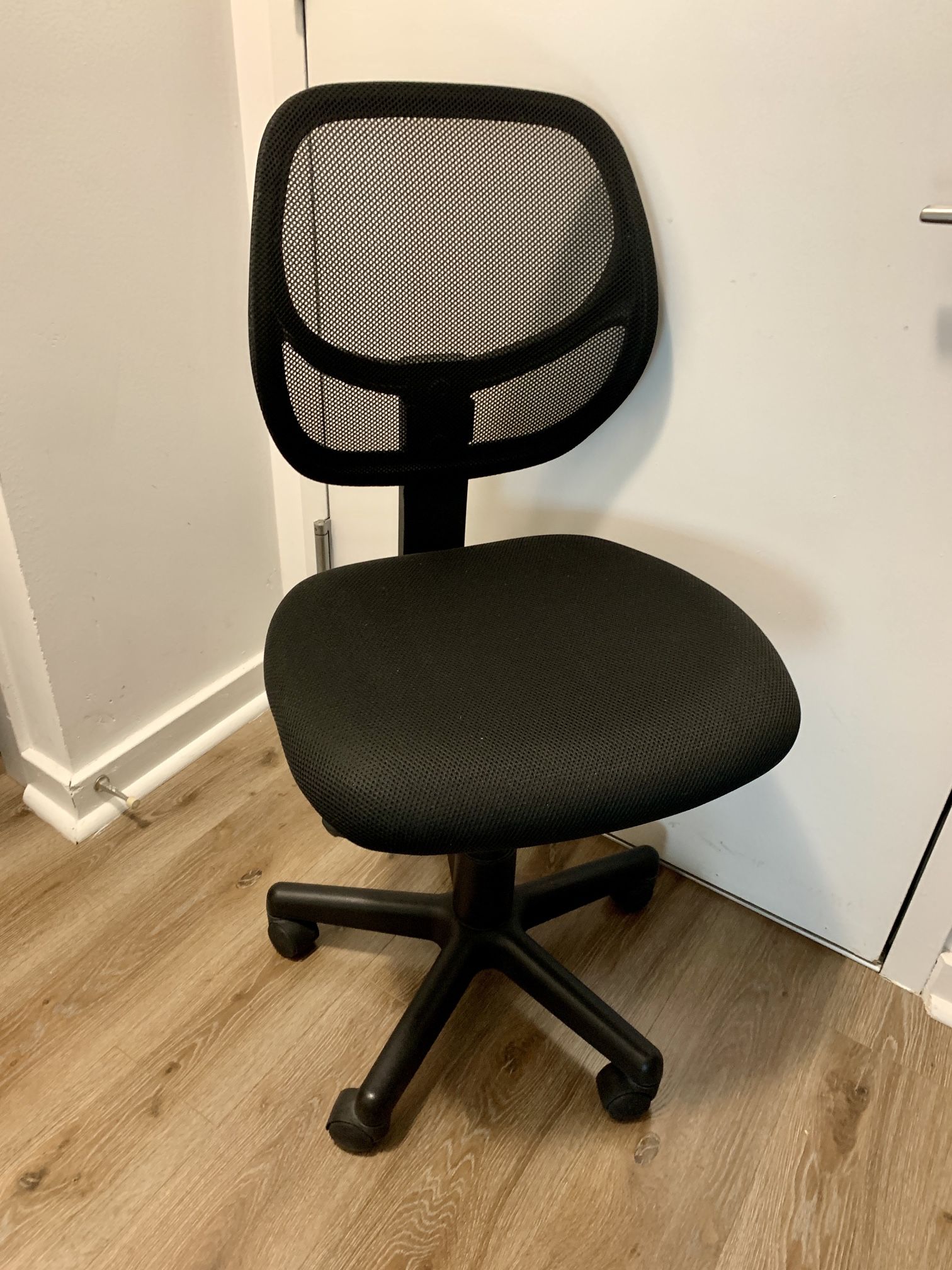 • Adjustable • Low Back • Padded Seat • Breathable Mesh • Swivel • Dimensions: 21.25"D x 22.5"W x 38"H Original price: $70 Pick up and cash only