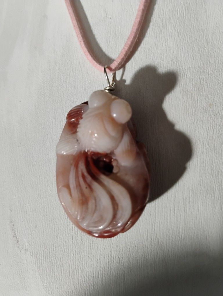 Carved Red Jasper Goldfish Pendant
