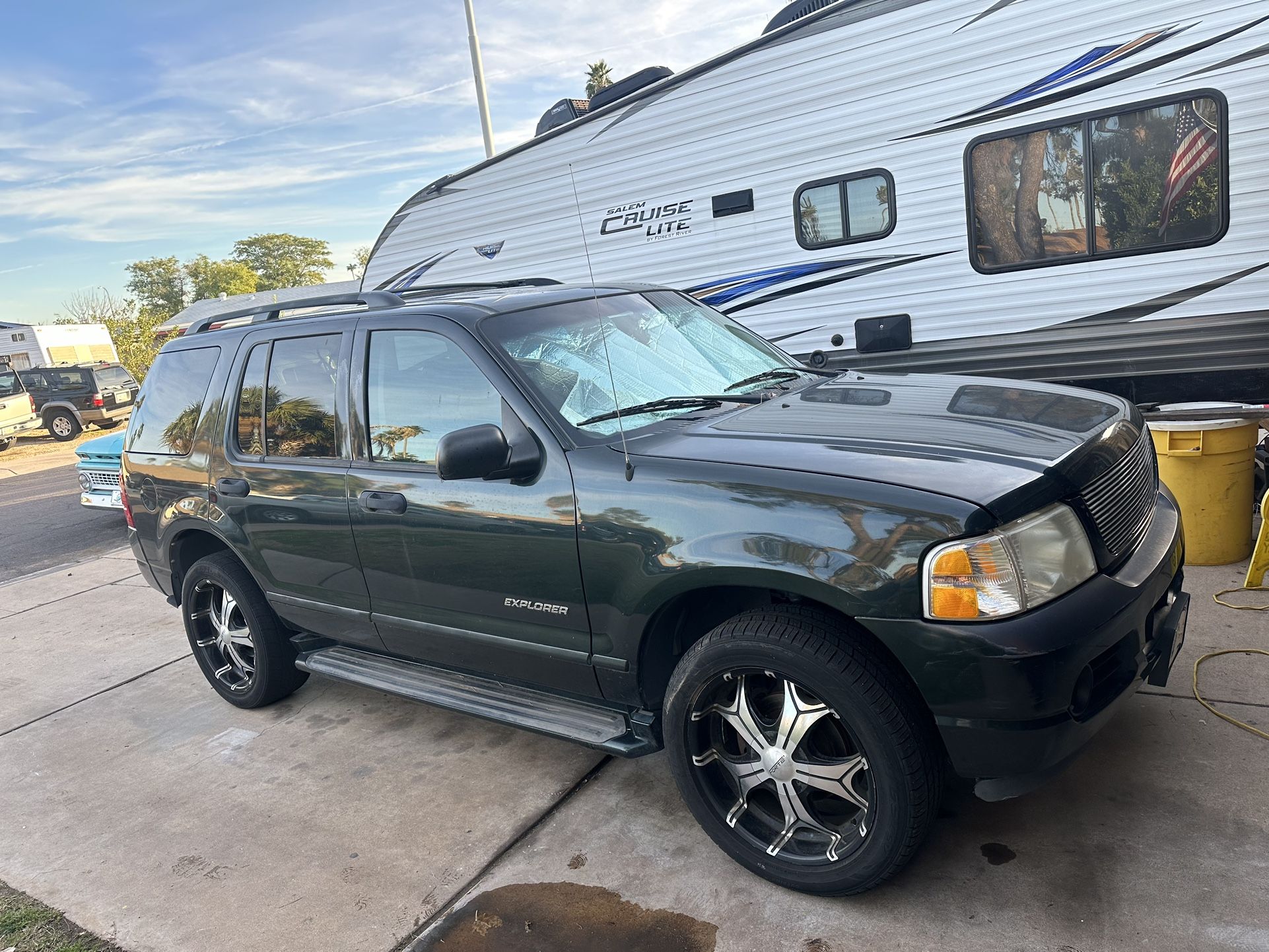 2004 Ford Explorer 2WD Green Drives half the tires are in good condition There’s a slow coolant leak somewhere under