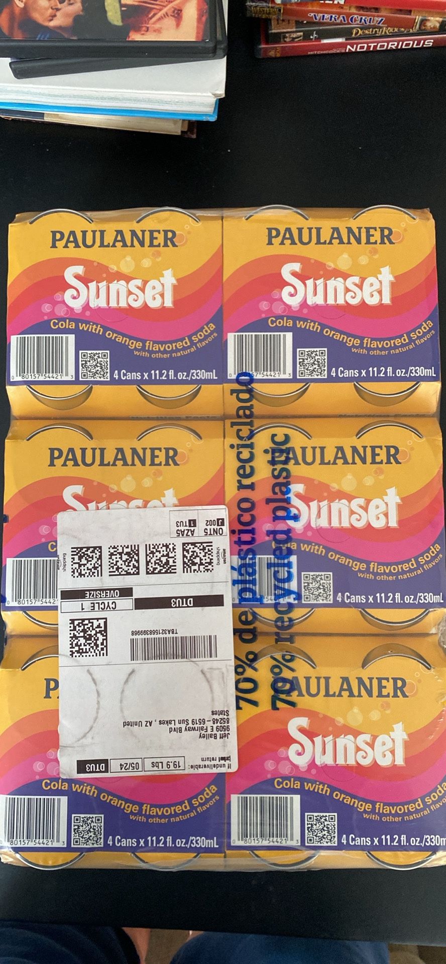 Case of six 4-packs of Paulaner Sunset Soda imported from Germany.