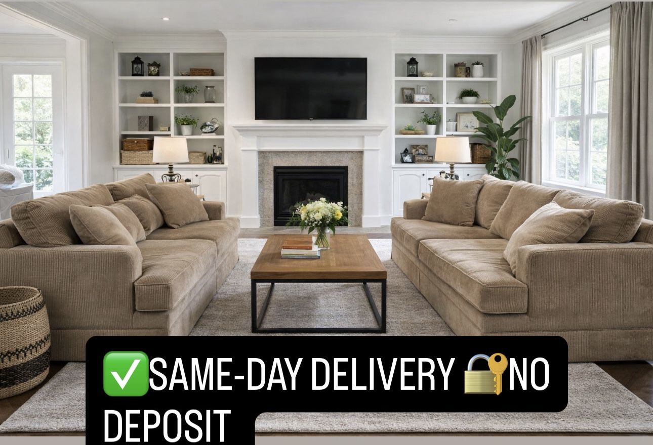 DELIVERY π Tan Corduroy Couch Set