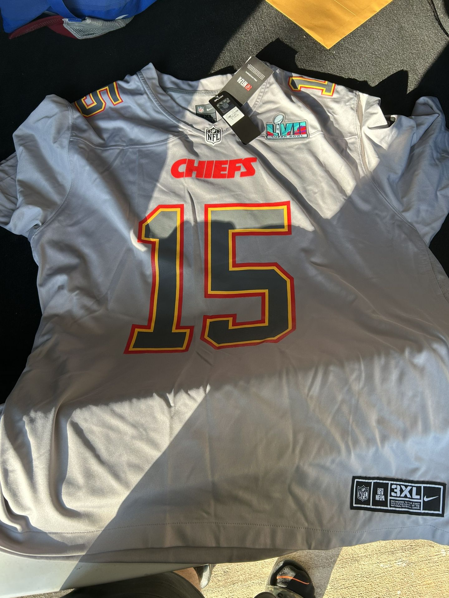 Patrick Mahomes Super Bowl LVII Jersey 3XL, New, Lowest I’ll go for is $50.