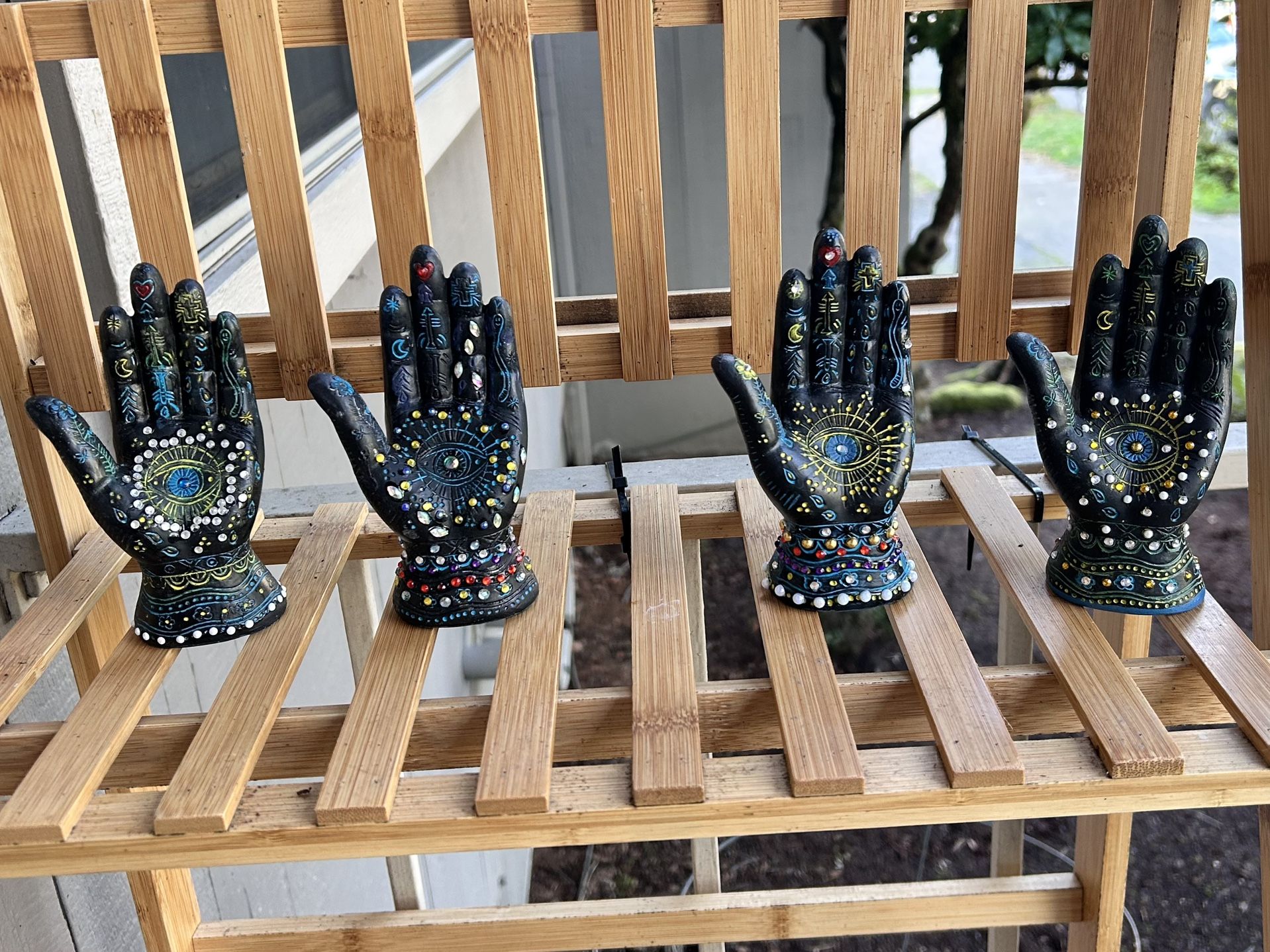 black hamsa 🪬 eye of god amulet proctective evil eye 🧿 “hand” decorated each is unique