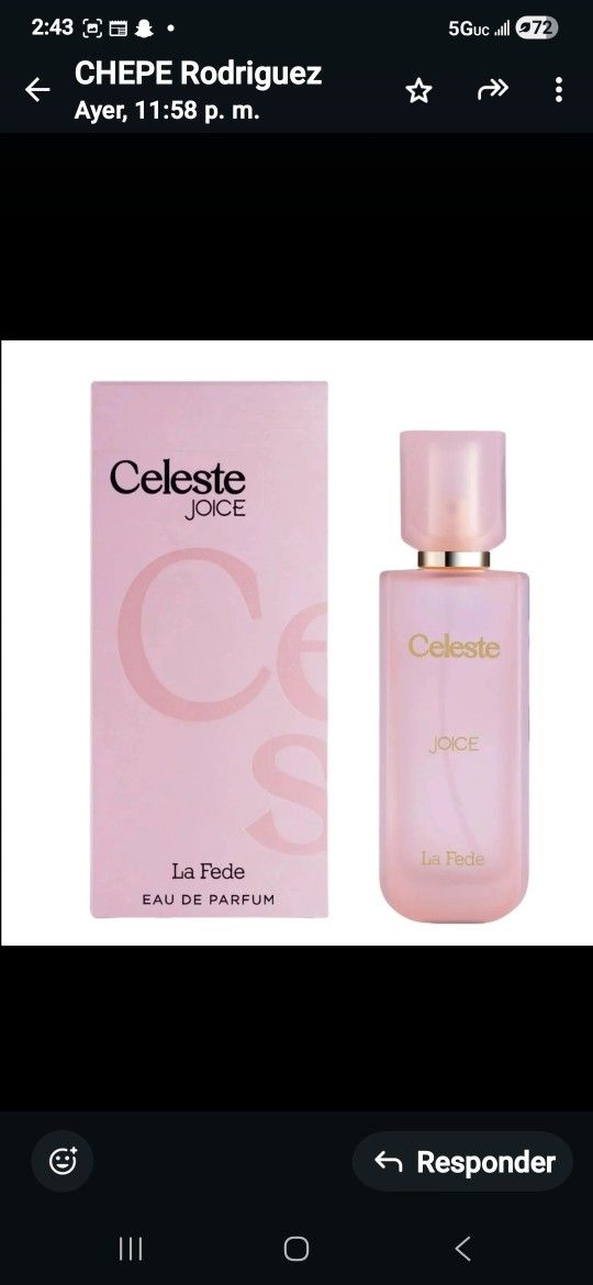 Celeste Joice La Fede Perfume fino delicado con notas de salida Pear,orange,jazmin,roses,vanila etc (( Pick Up Only ))