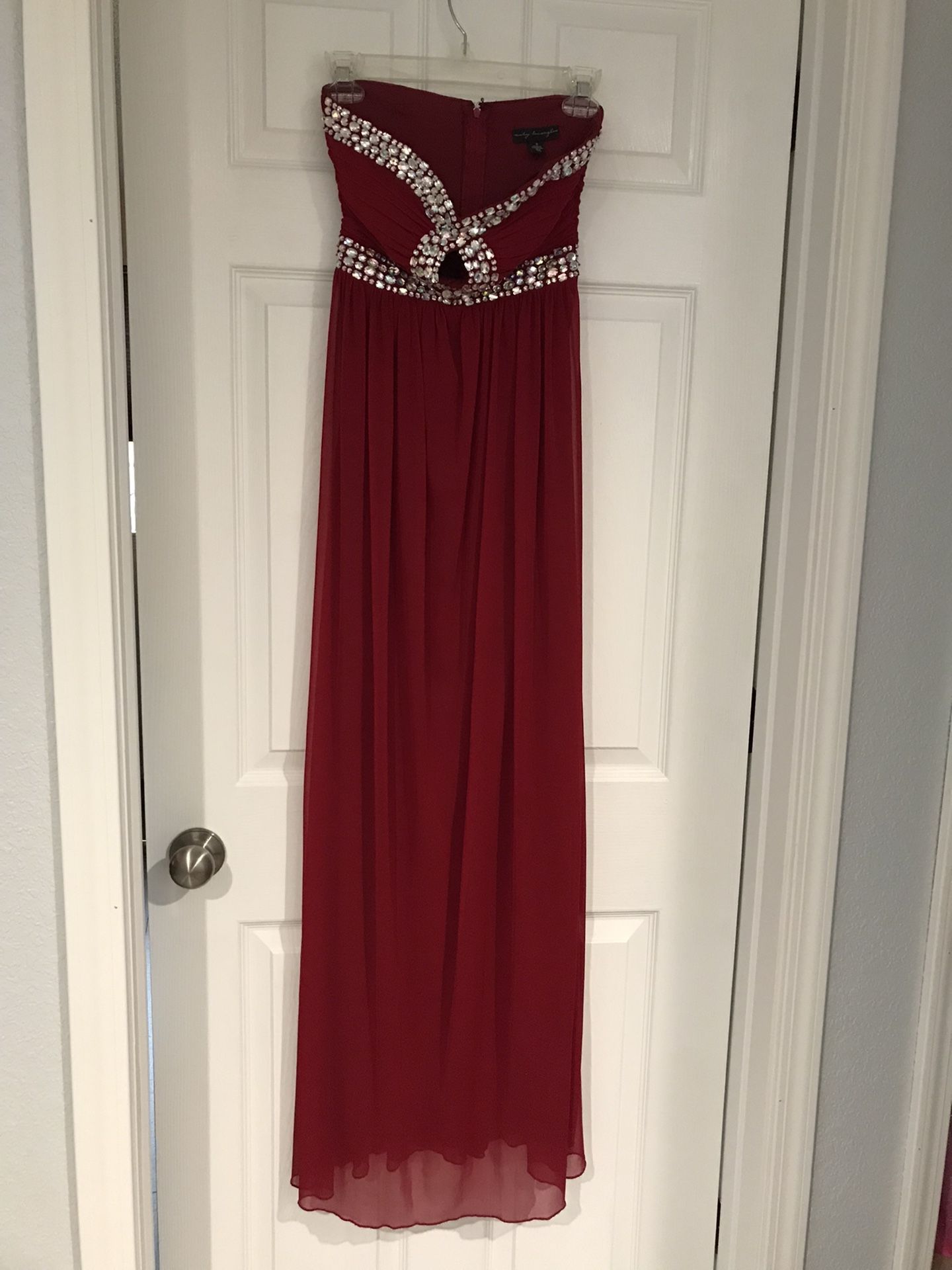 Strapless full length formal gown. Zipper in the back. Size small/5. Worn once at high school dance/prom.