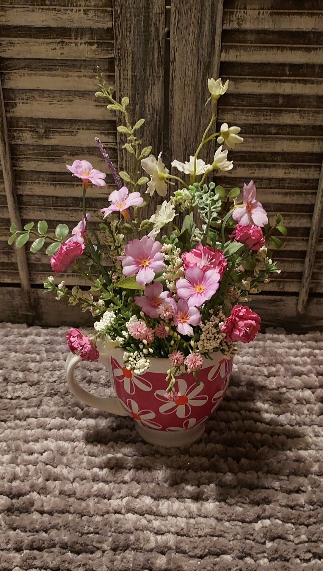 Ht-12in Width-10in HANDMADE Artificial Spring Floral In A Coffee Cup