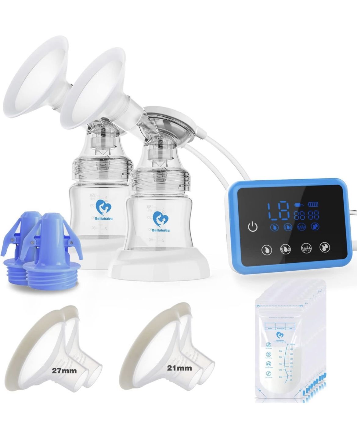 Double Electric Breast Feeding Pumps with 21mm,24mm,27mm Flanges,Touch Screen,Pain Free Strong Suction 4 Models 9 Levels Strength