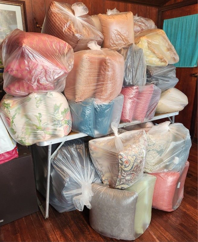 PRICE IS FIRM. THIS IS FROM MY UNCLE'S ESTATE. I AM HELPING HIM TO SELL HIS THINGS TO HELP HIM WITH PAYING FOR MEDICATIONS, FOOD, AND HEATING AND COOLING AS HE IS ON A FIXED INCOME AND HAS COPD. $4.00 EACH These were made by my aunt, who was an industrial sewer. There are 11 pillows. Large assortment of styles, designs, and colors. They are located in Kernersville. I am selling for my Uncle. These are designer pillows, and if you know anything about the prices of designer pillows, this is a great deal. BY APPOINTMENT ONLY. SERIOUS INQUIRIES ONLY, PLEASE. CASH ONLY. NO PAYPAL, VENMO, CASH APP! PLEASE HAVE EXACT AMOUNT, CANNOT MAKE CHANGE.