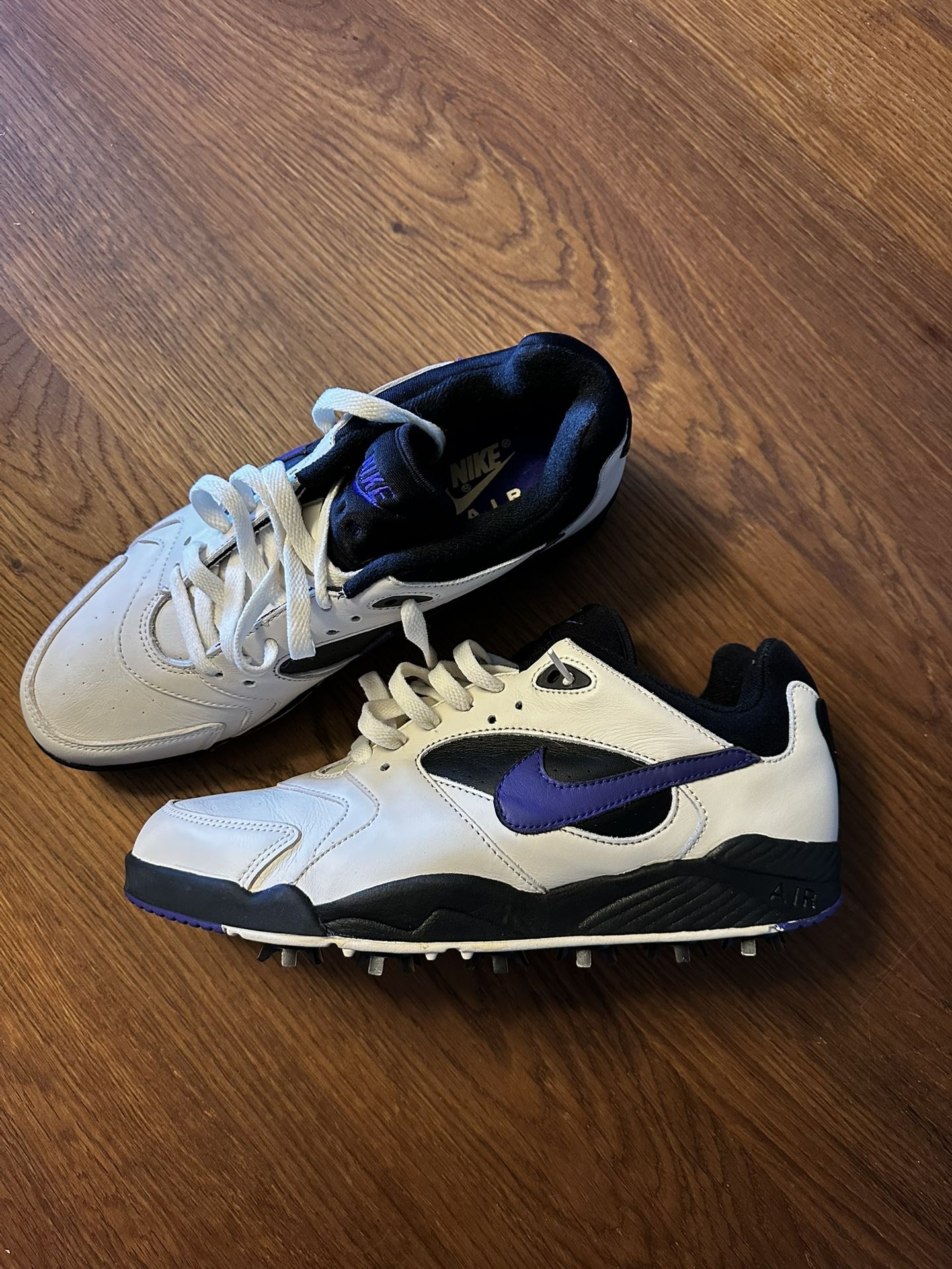 Size 10.5. Pristine condition. Brand new spikes added. Just too narrow for me.