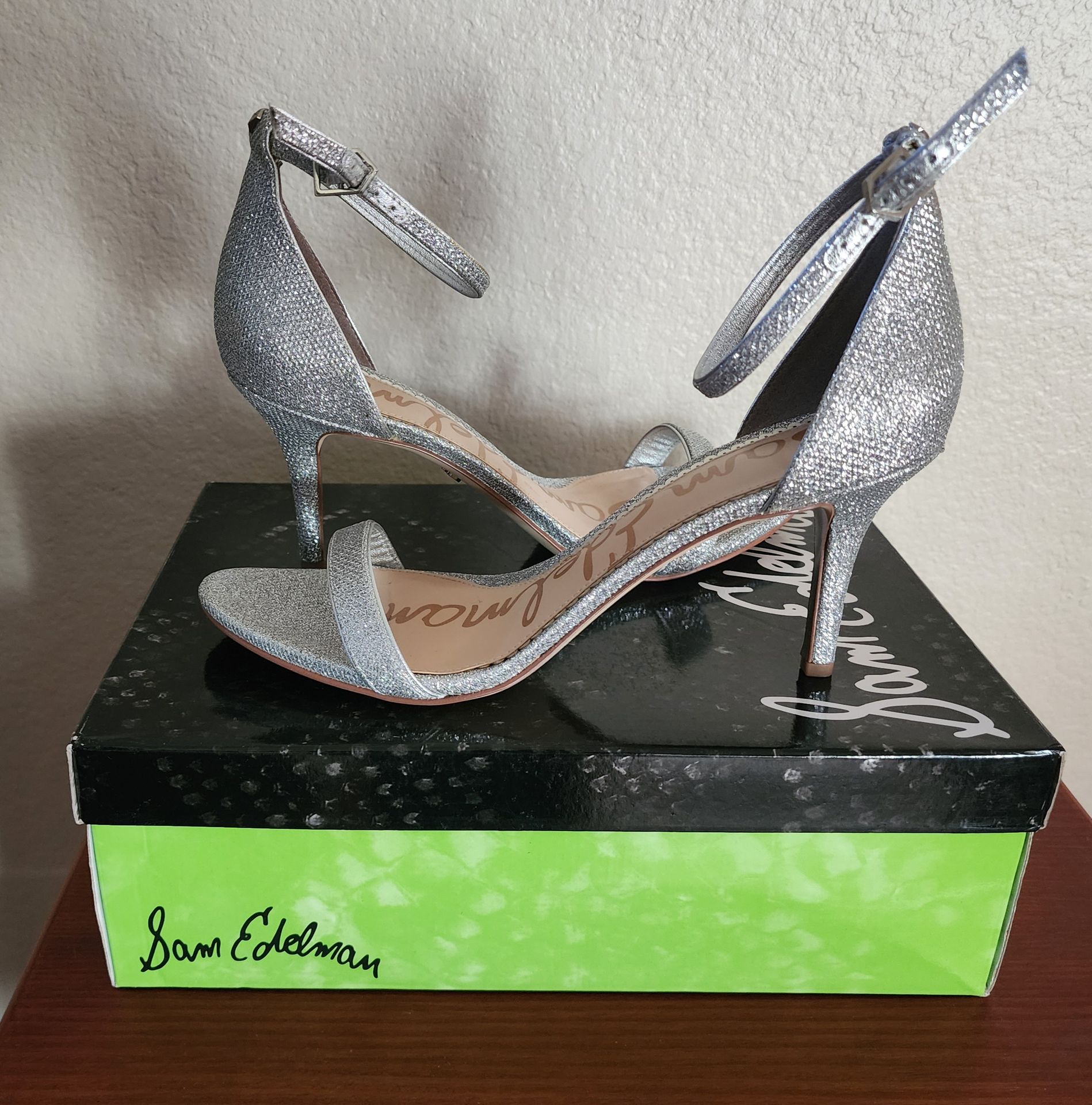 Used once for a few hours, Glittery Silver in color, Women's Size 10, approximate 3.5 inch heel