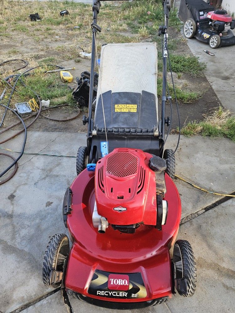 22 inch Toro self propelled lawn mower with rear wheel drive and 7.25 hp motor starts on first pull and runs perfect ready to use