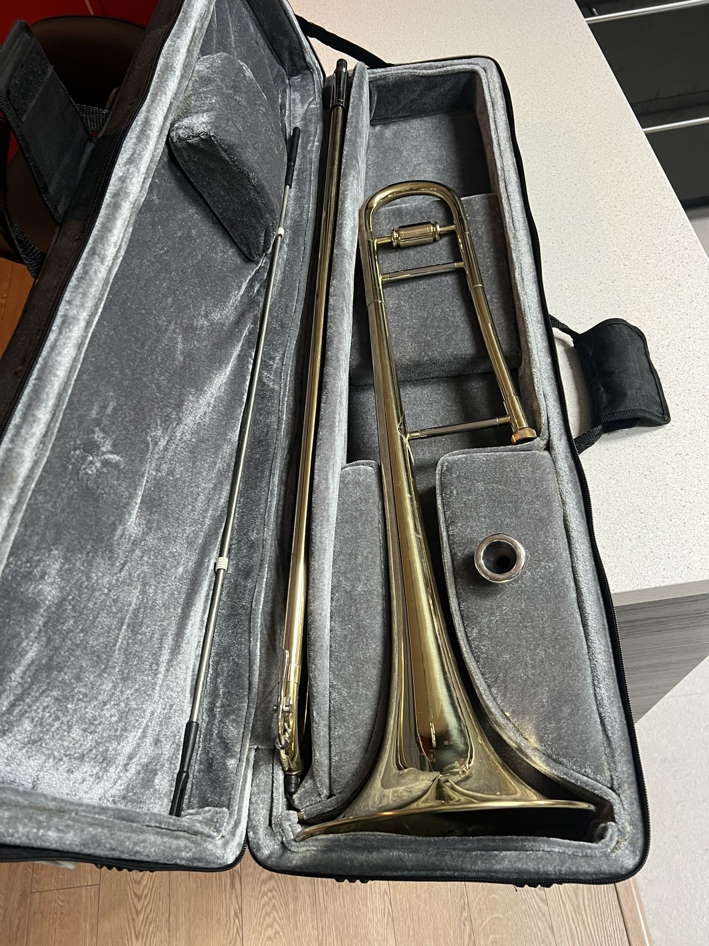 Trombone in like a new condition Brand Sonatina Los Angeles Recently serviced All slides move smoothly Silver plated mouthpiece Original case Cleaning rod Good for beginners