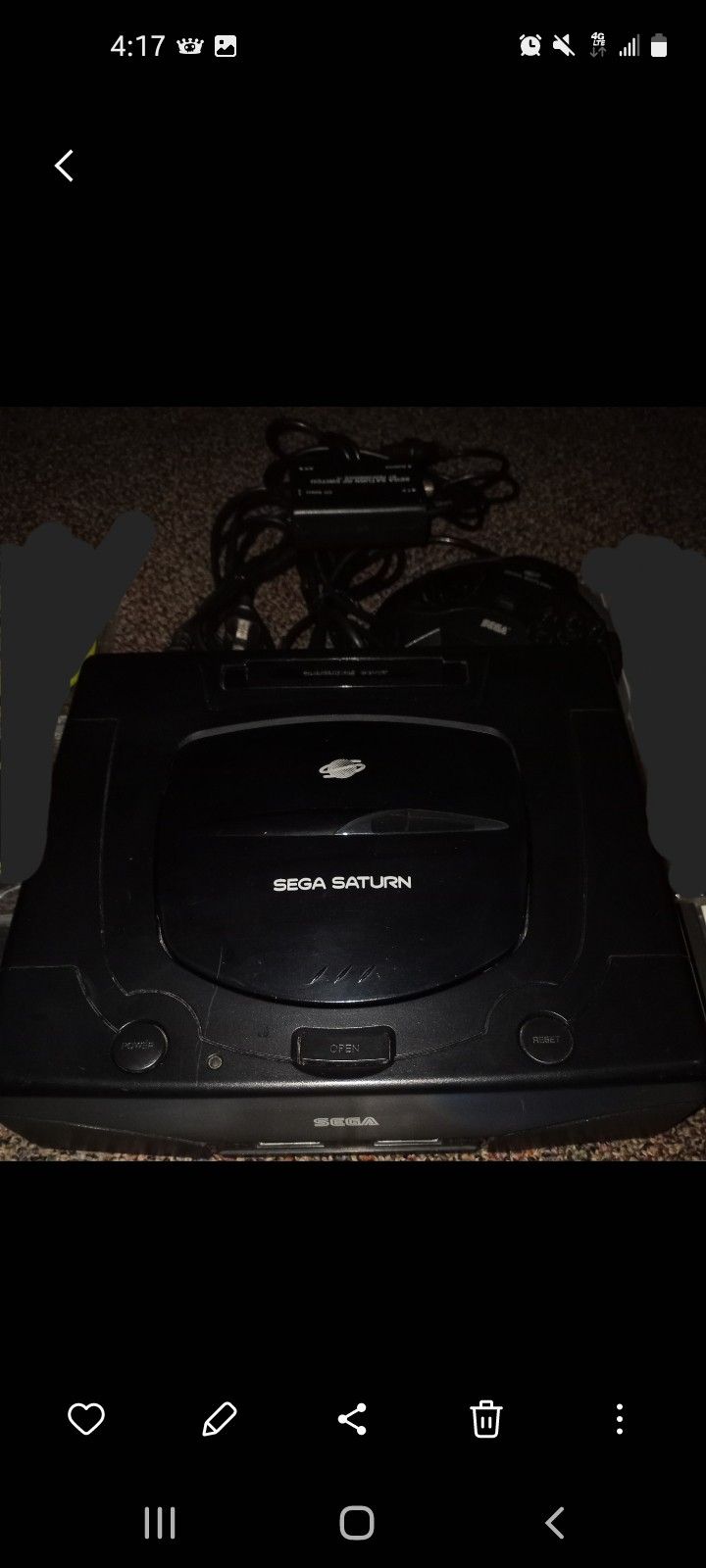 Saga Saturn for sale 1. disk spinning 2.power on just no audio or video?? All cords and one controller $25. ASIS PIC( UP... $30. TO MAIL IT.. you can fix it or use it for part's..