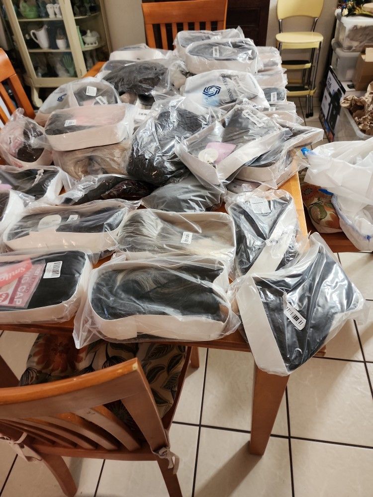 This is not all that I have. I have triple what's on the table. I have triple than what's on my table. There all beautiful. Some have streaks in them or high lites. They must all go. Starting price is $10.00 for the short ones. Then there is one that goes down past me bum.