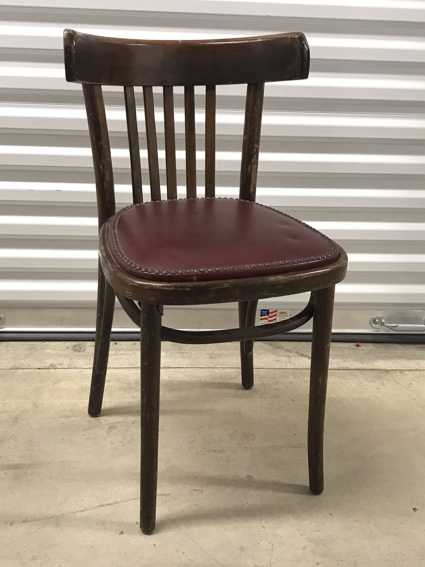 Antique chair wood padded seat in burgundy
