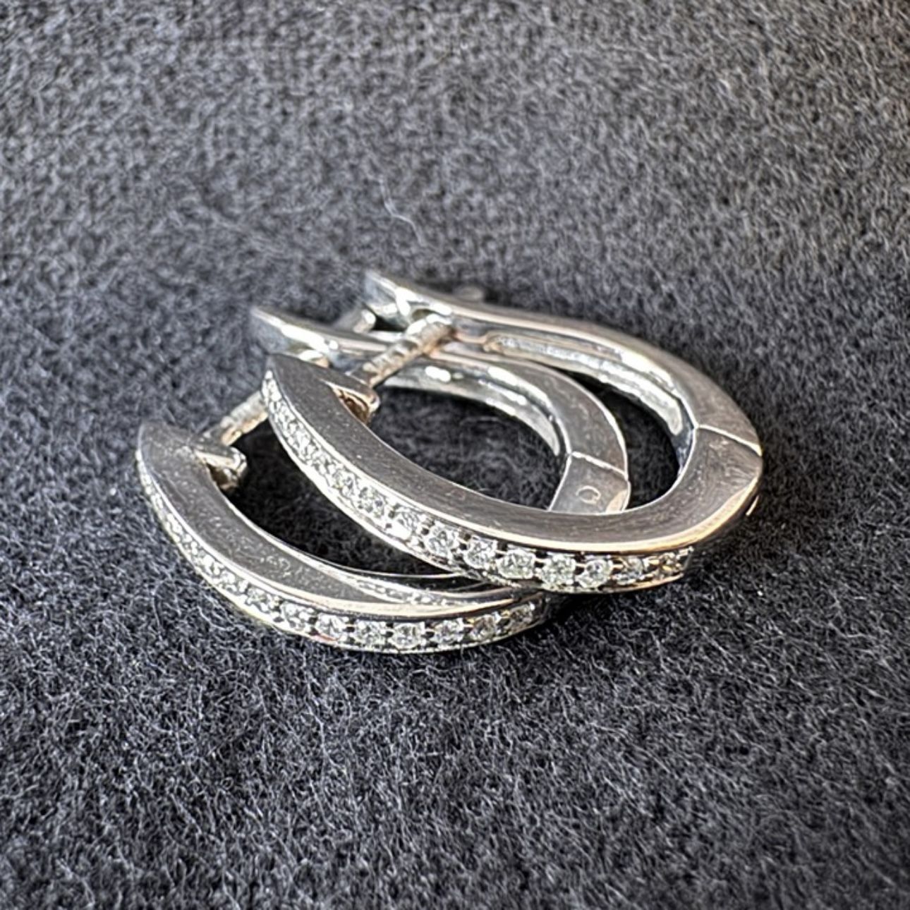 Solid 14K White Gold Diamond Huggie Hoop Earrings with 0.24 Cttw. H VS2 Natural Diamonds.